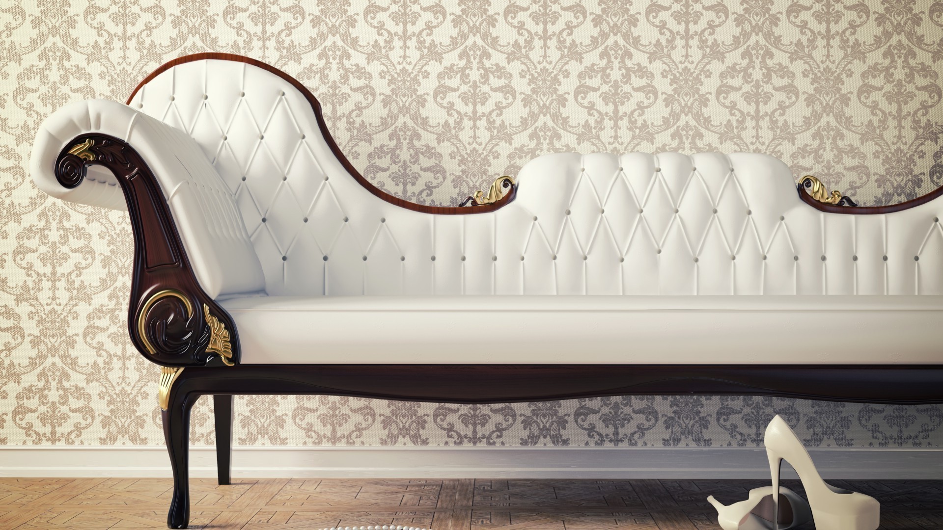 Royal white sofa against the wall