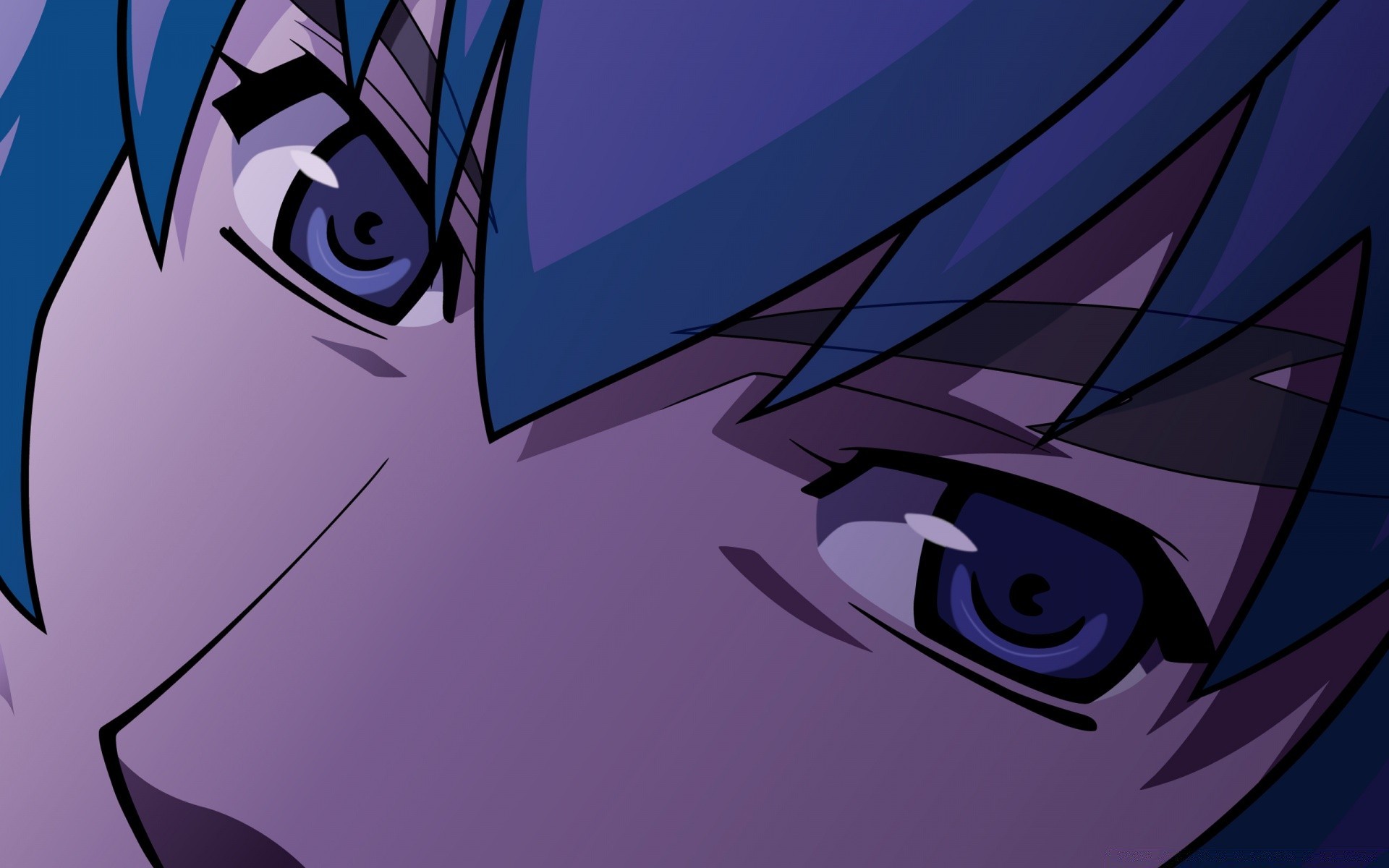 Anime young man. Close-up of the face. Black bangs and black eyes