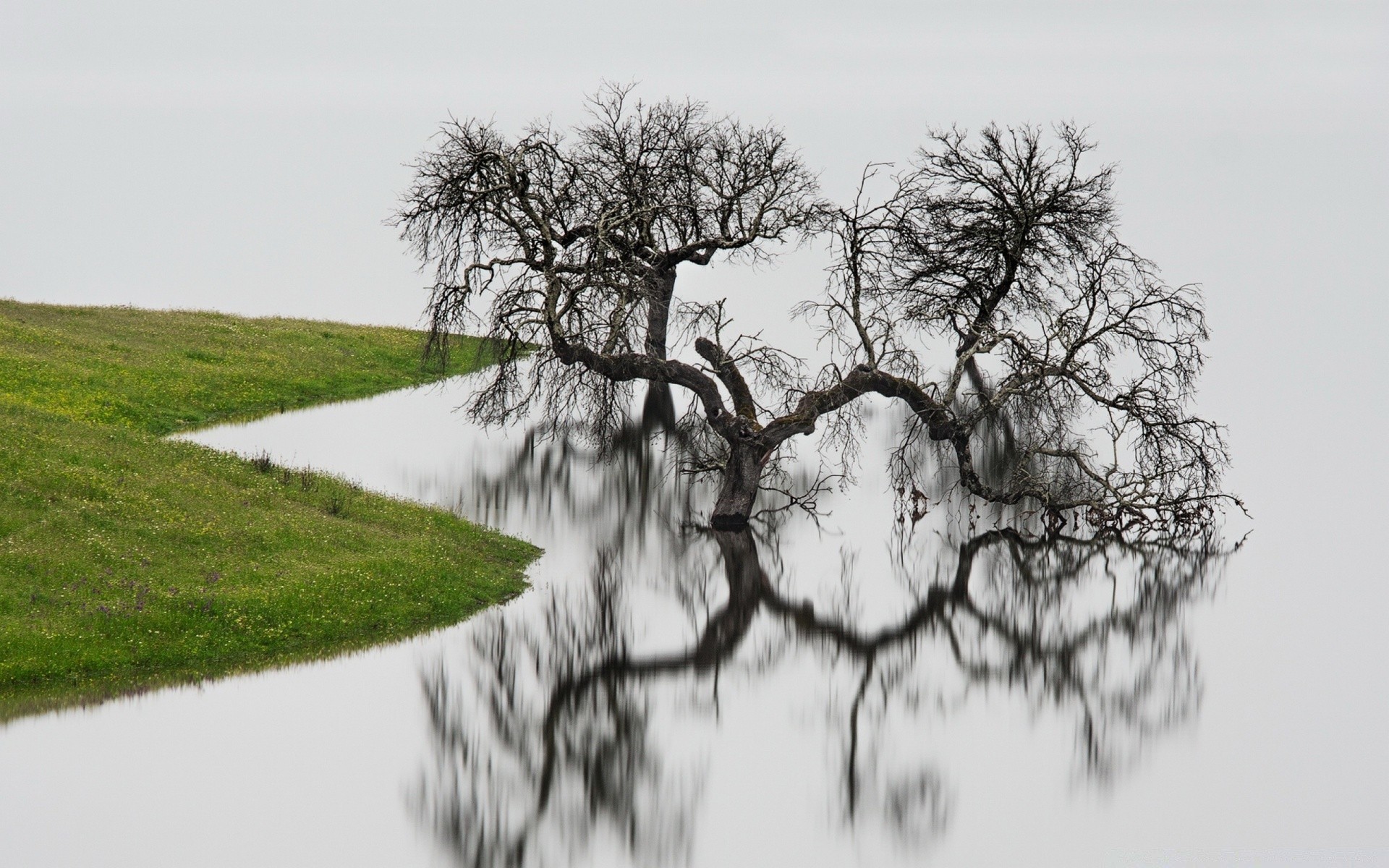 THE TREE IS REFLECTED IN THE WATER MIRROR