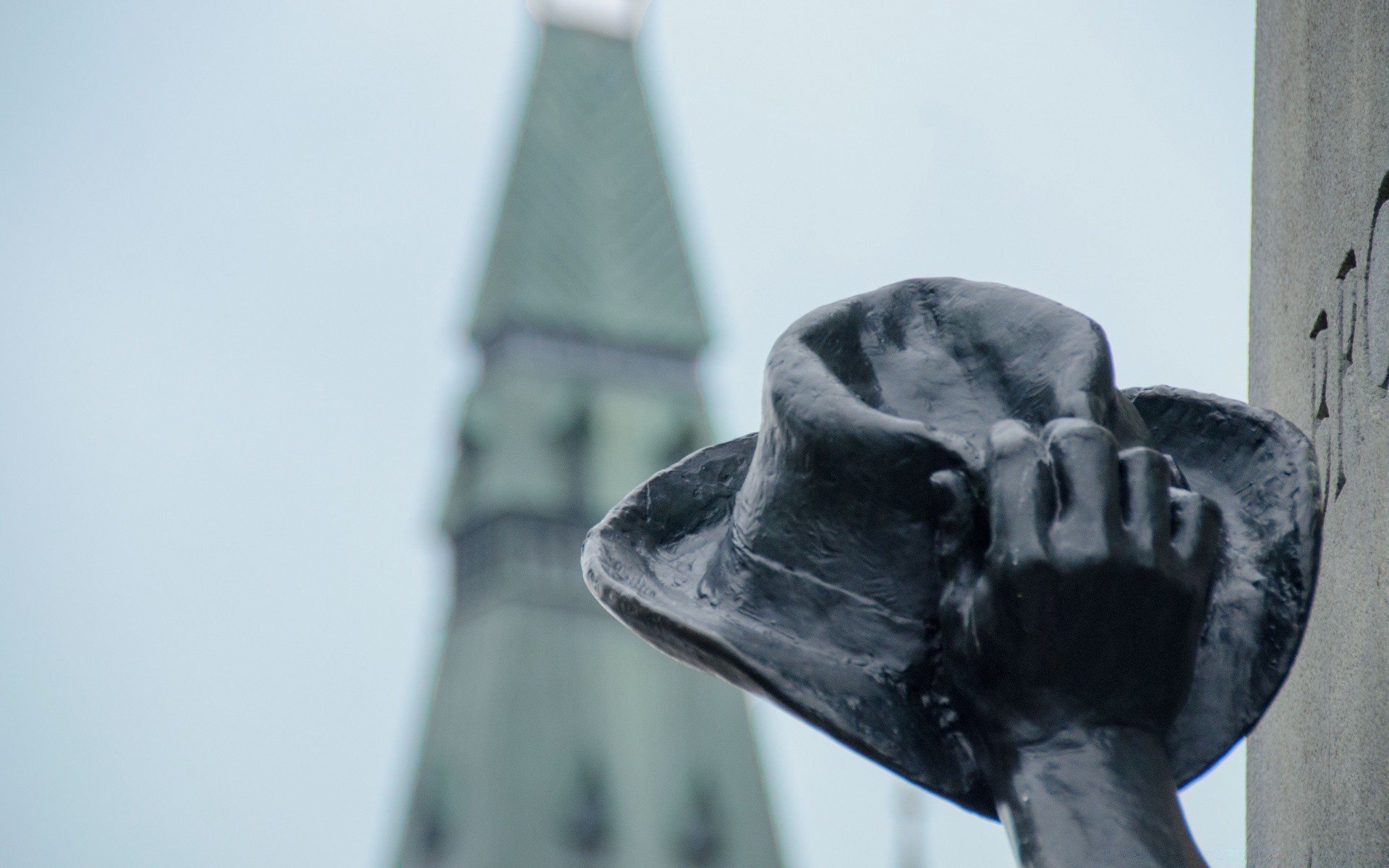 A hand holds a hat against the background of the roof