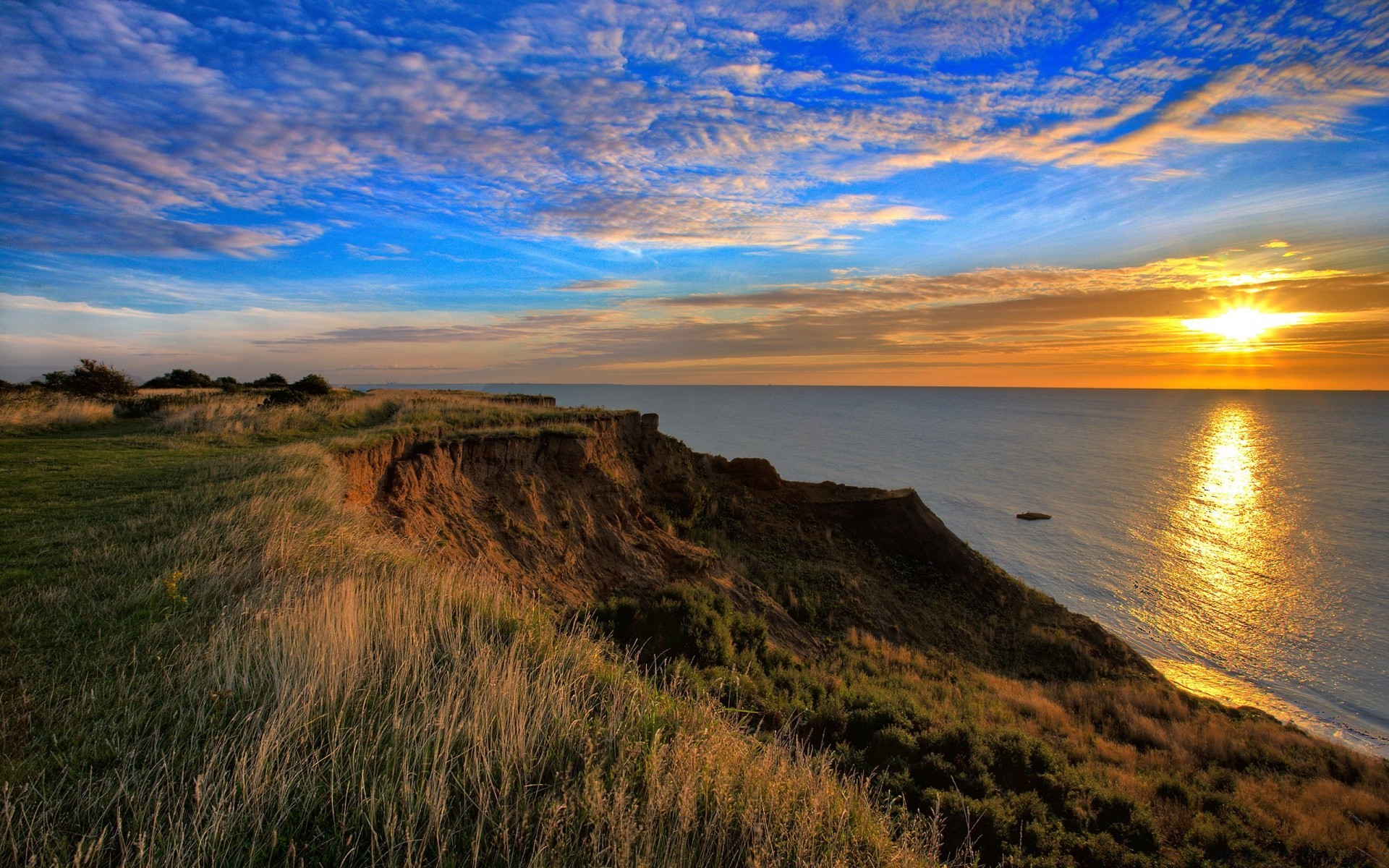 Sunset over a calm sea, the sun setting in the oceanSunset over a calm sea, the sun setting in the ocean