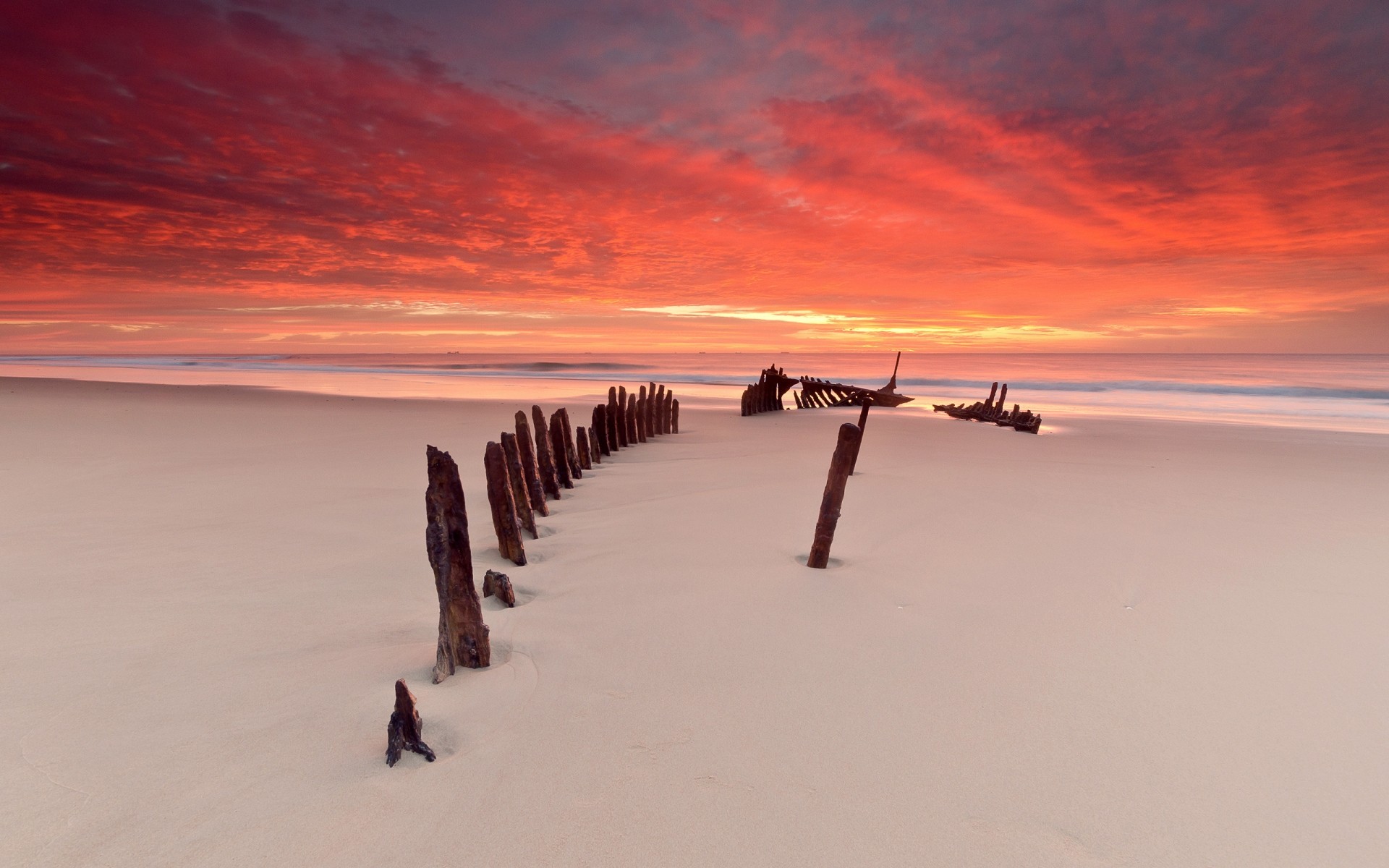 A lonely sandy beach meets the sunset