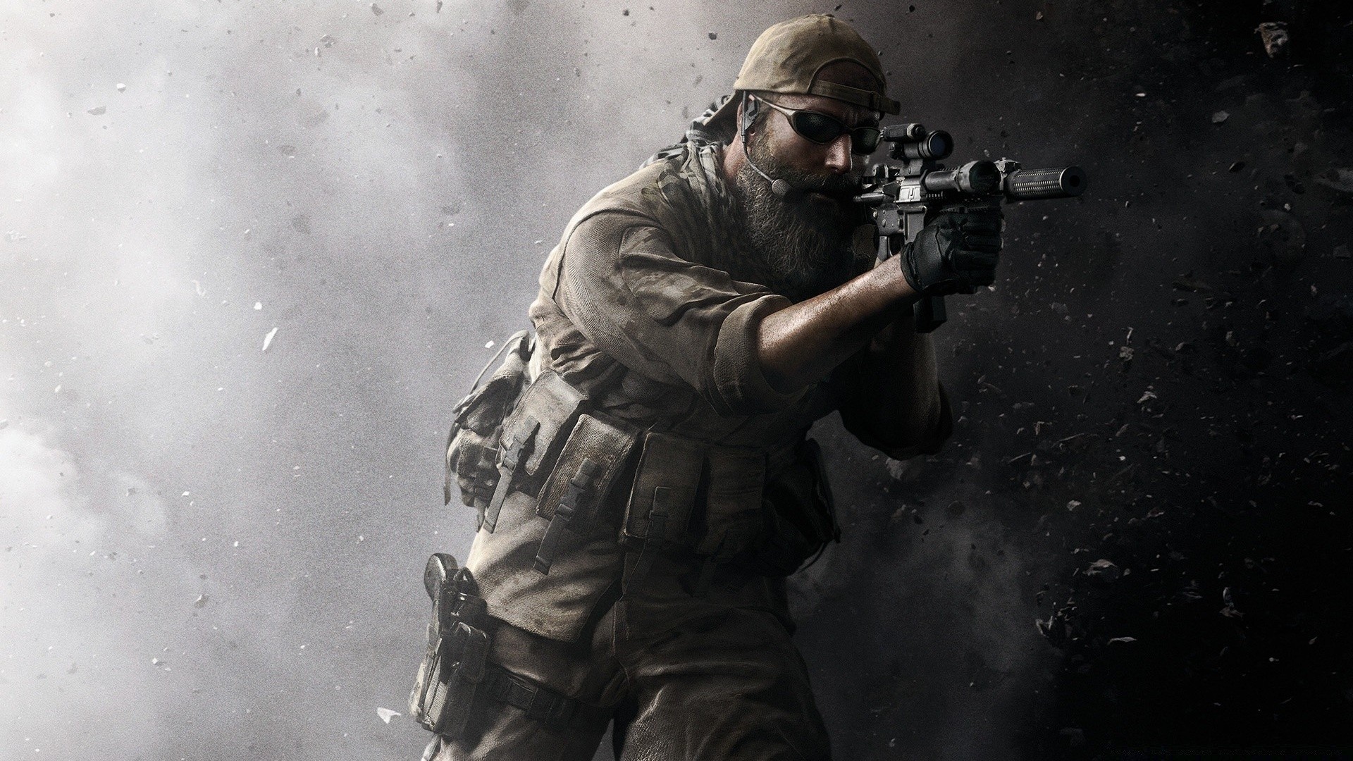 A shooter with a rifle in ruuah aims