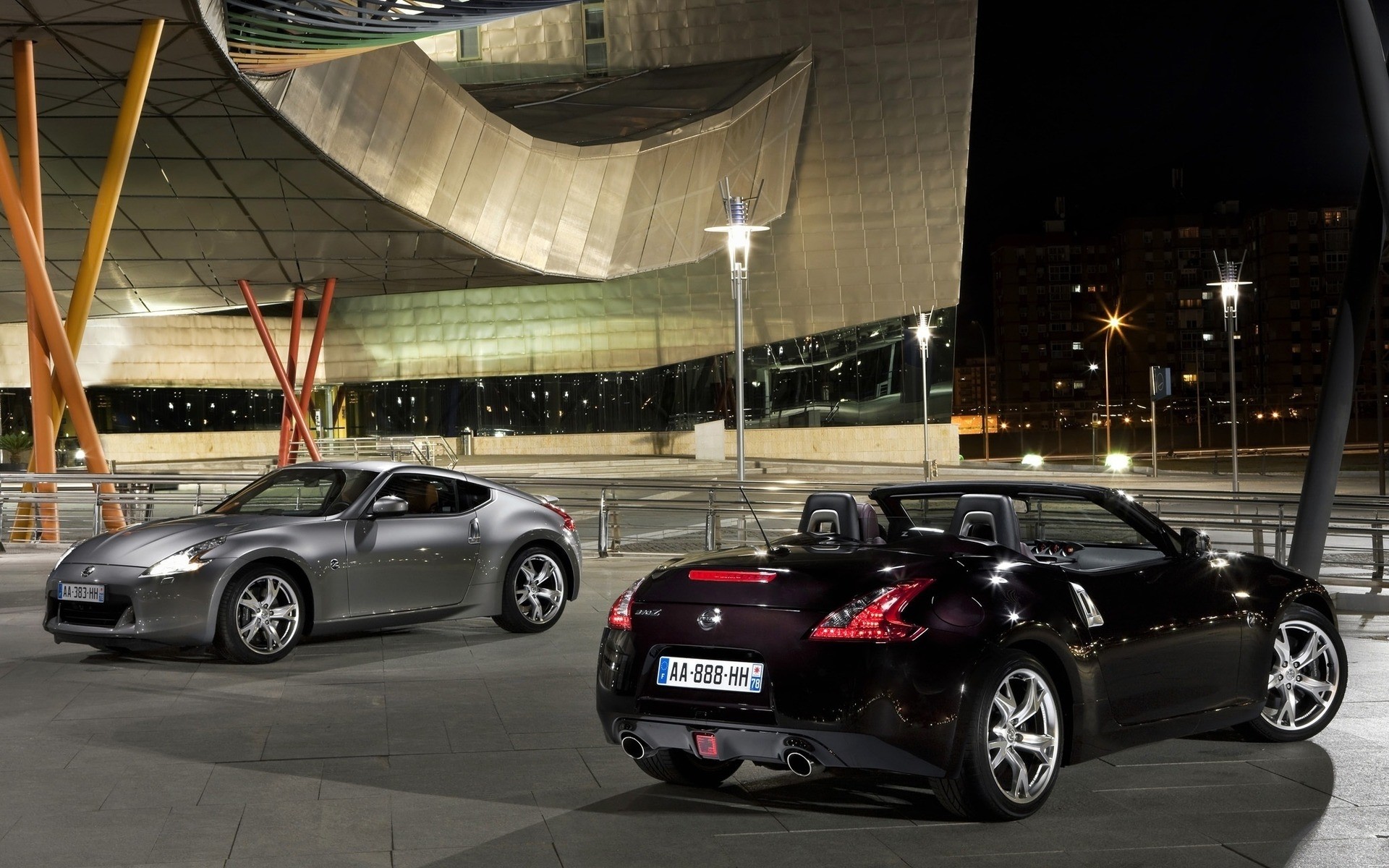 Gray and black nissan cars
