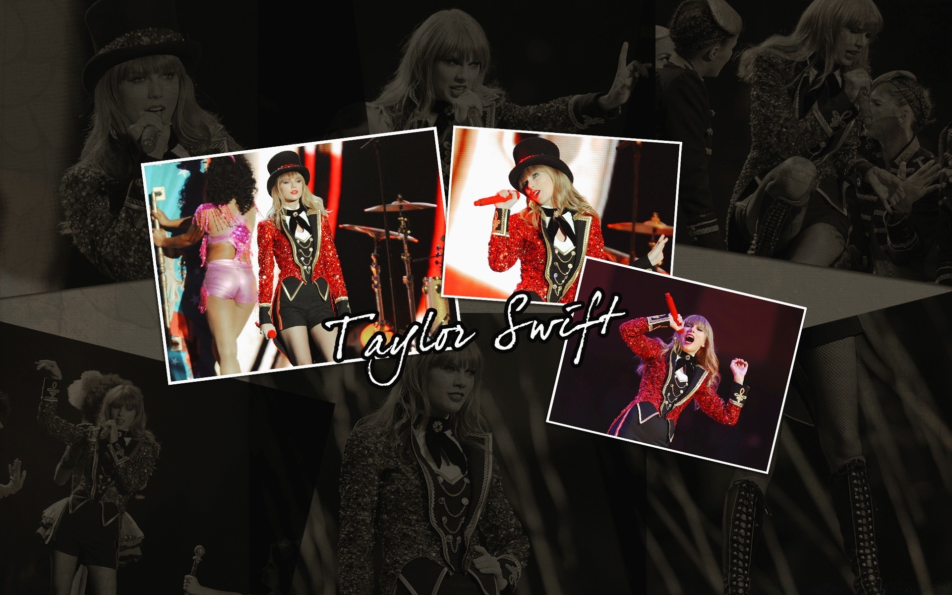 Collage of photos of a beautiful singer