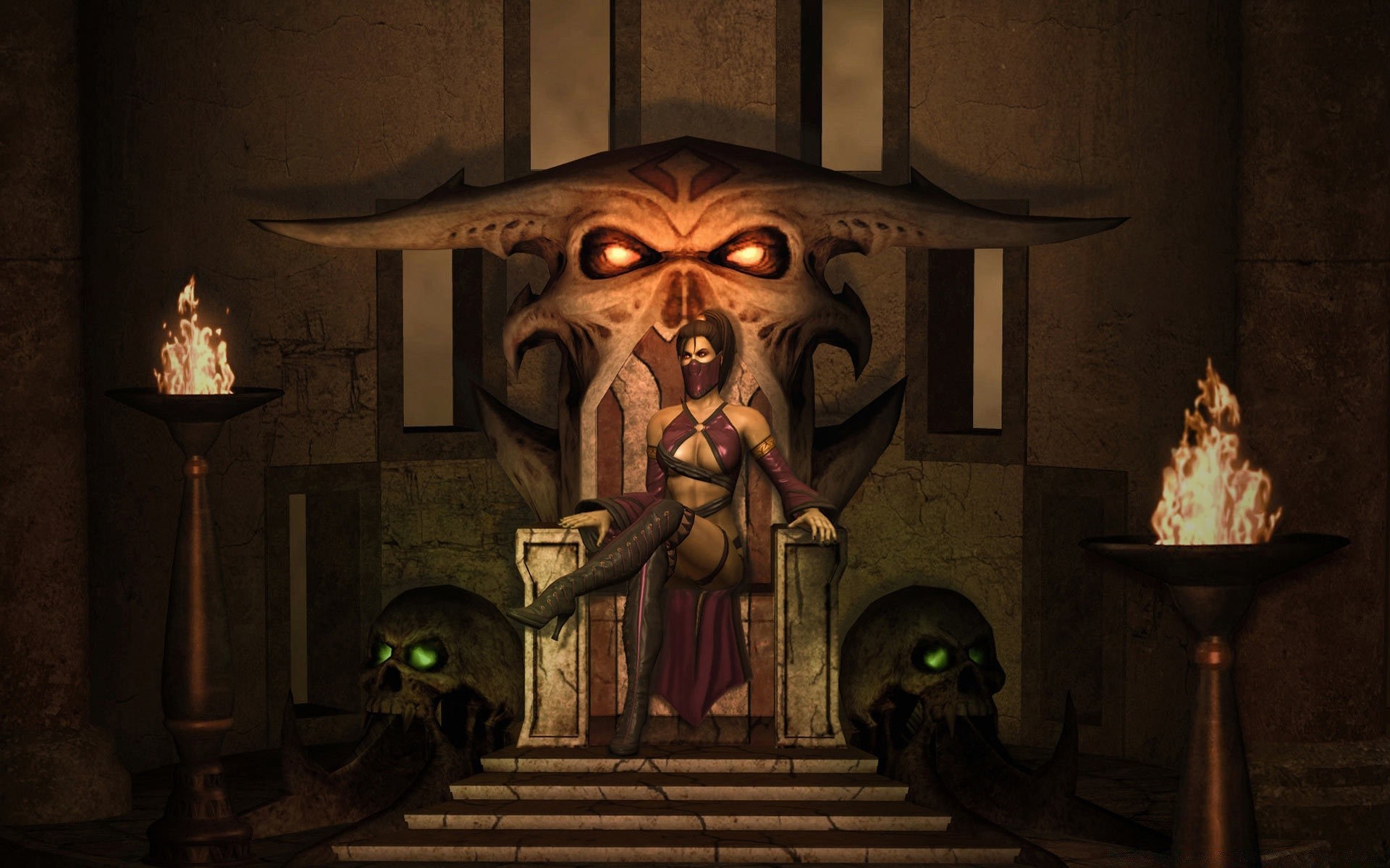 A beautiful woman sits on a throne
