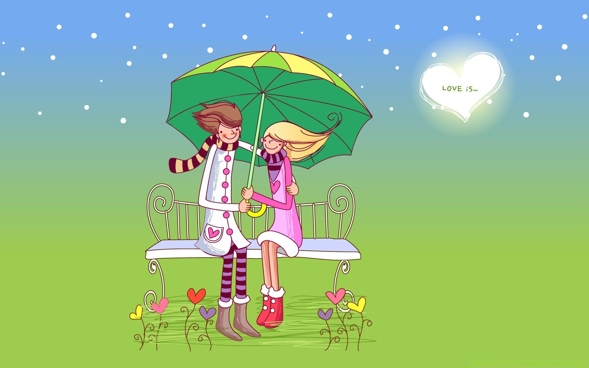 A Valentine s Day card. A couple sitting on a bench