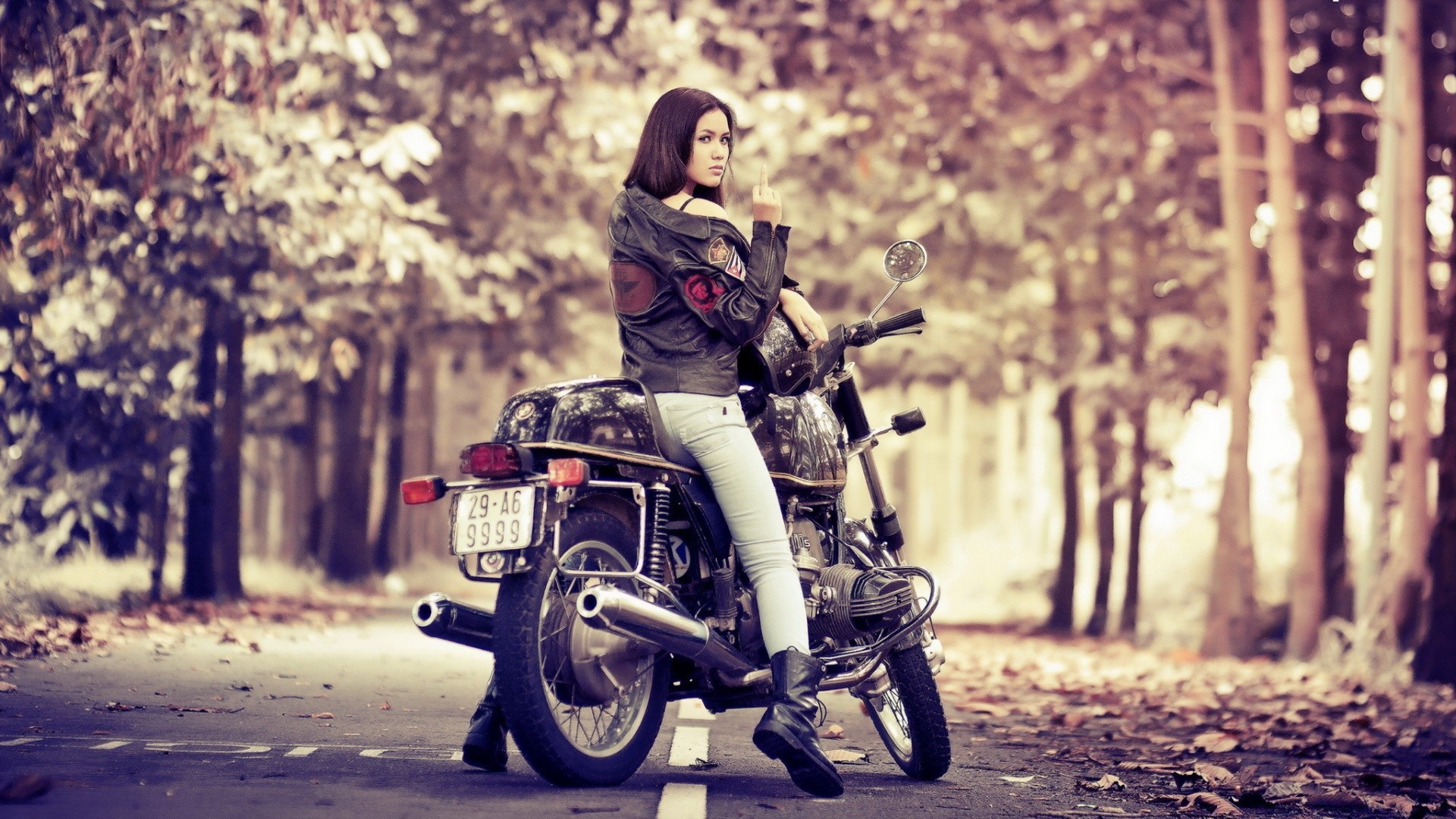 Young girl on a motorcycle in the woods
