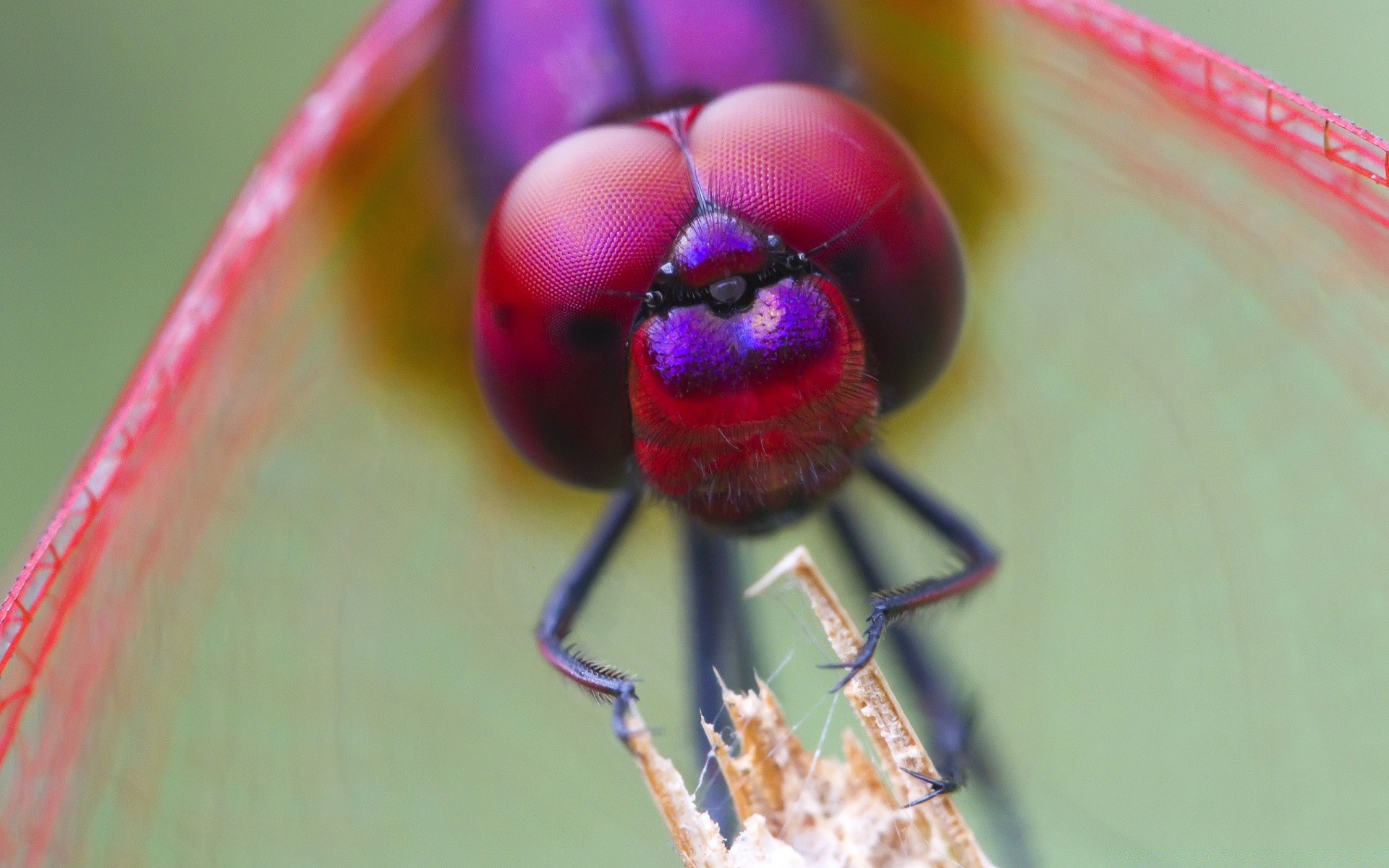 Macro photography of a dragonfly sitting on a plant