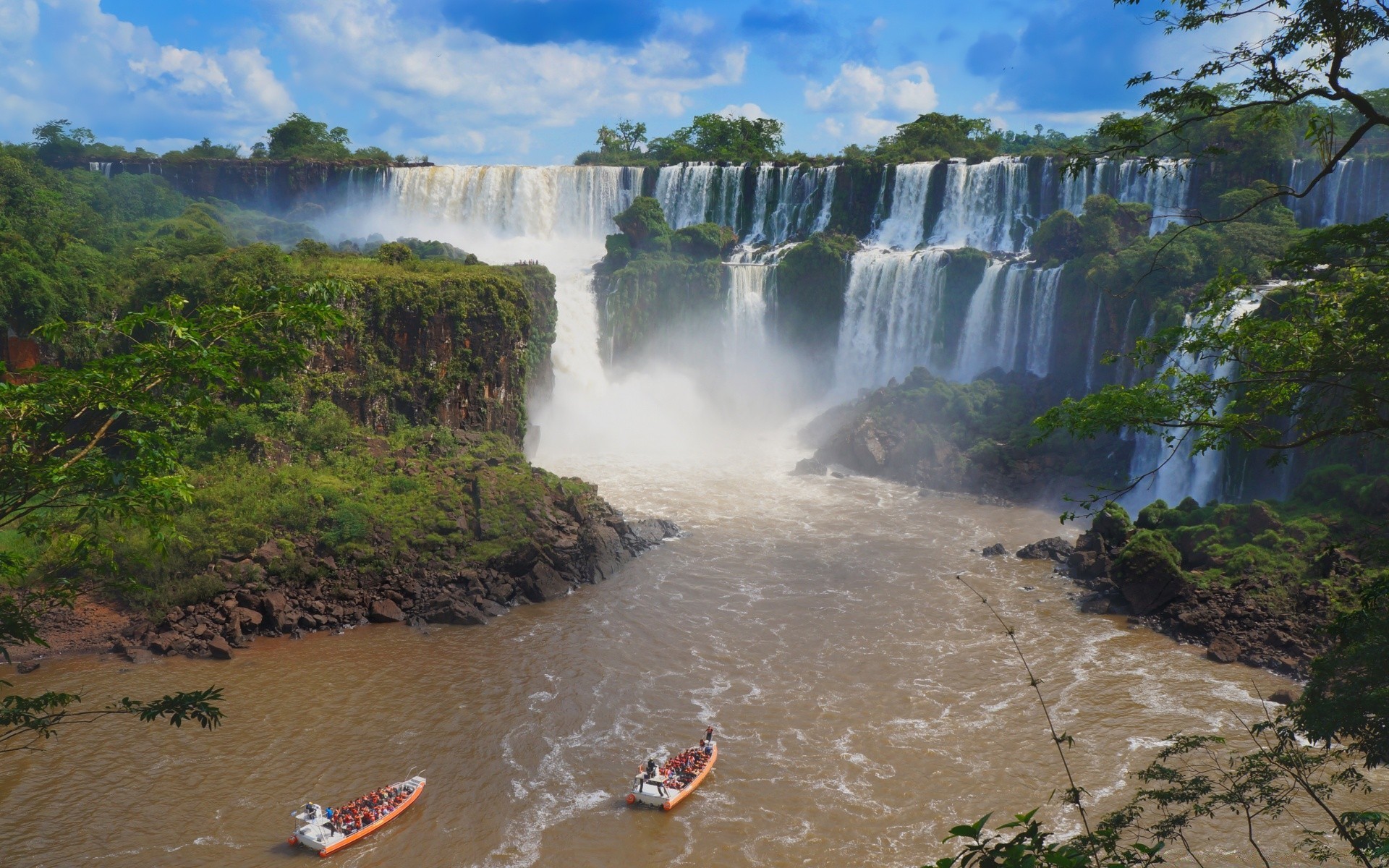 The approach of a black-and-white waterfall and peopleThe approach of a black-and-white waterfall and people