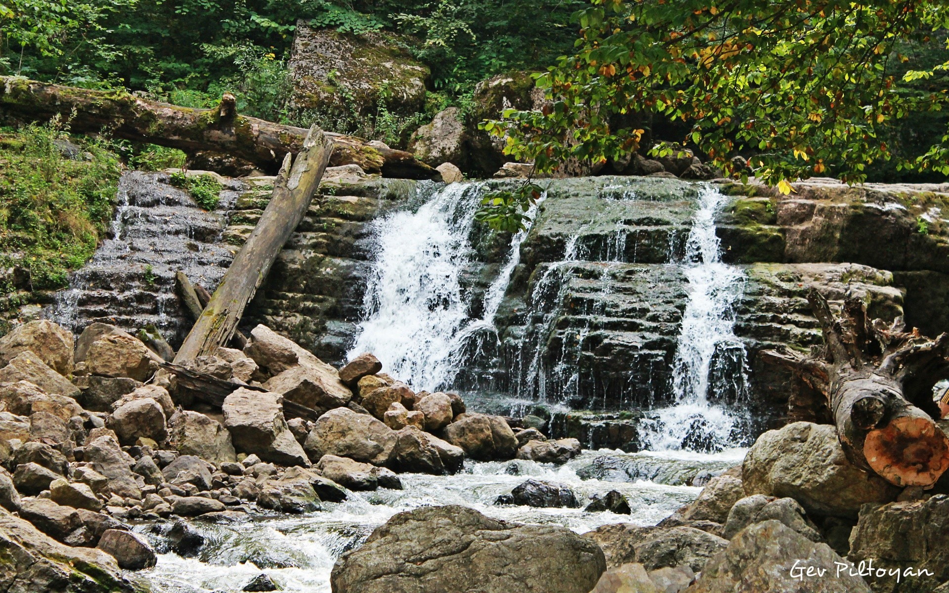 Cozy beautiful bowl of a small waterfall