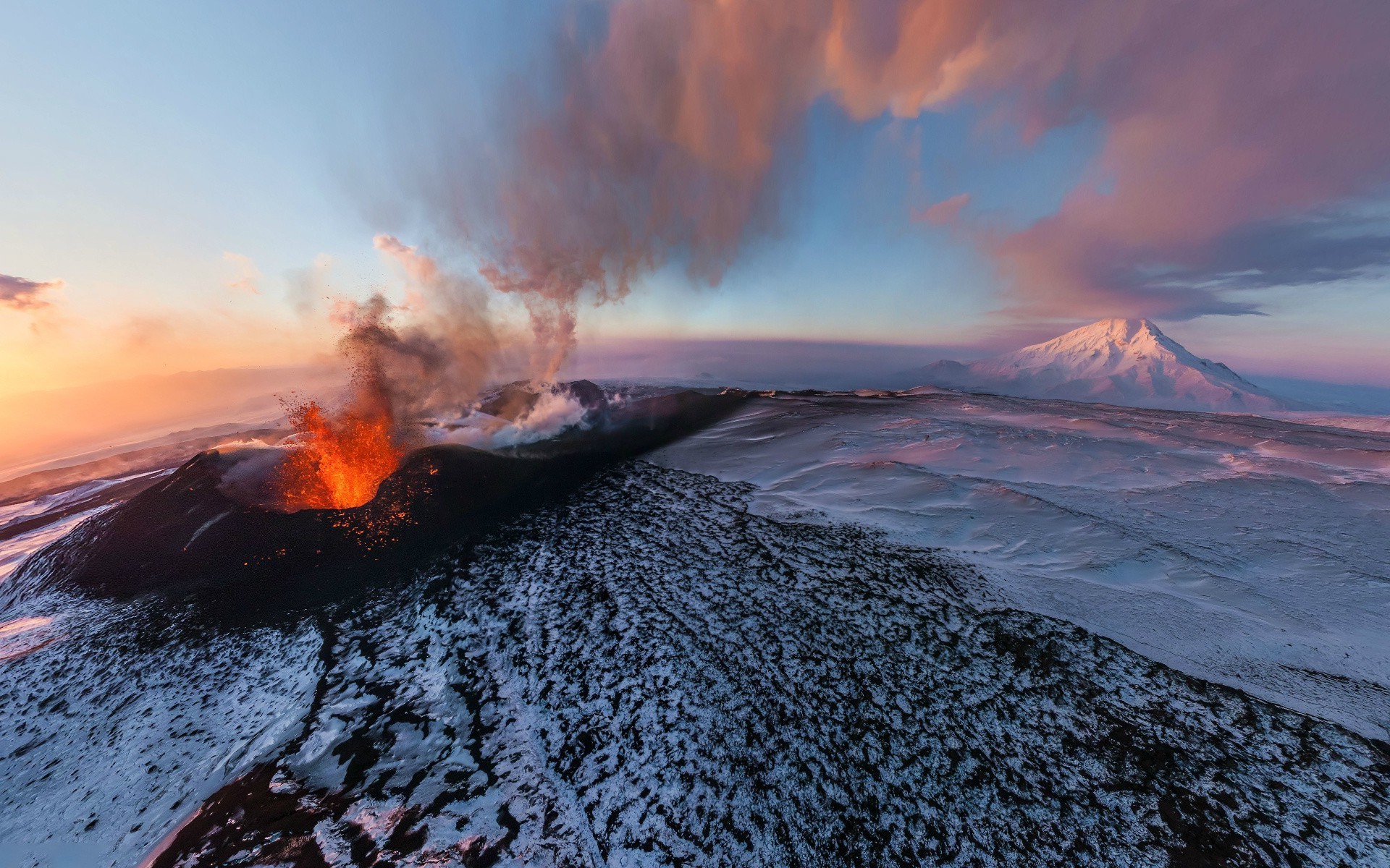Volcanic eruption at sunset