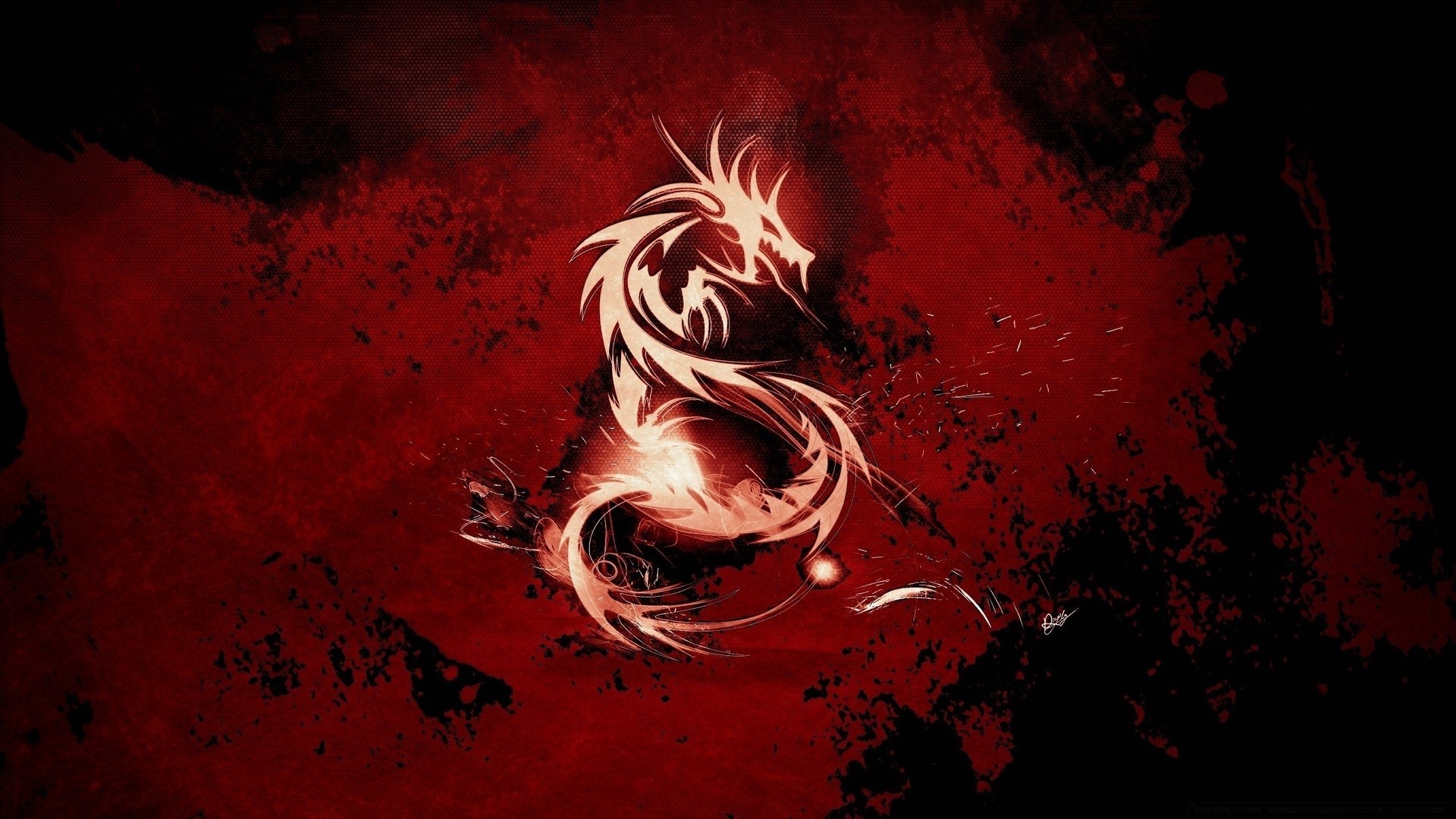 Fire dragon on a red background for wallpaper
