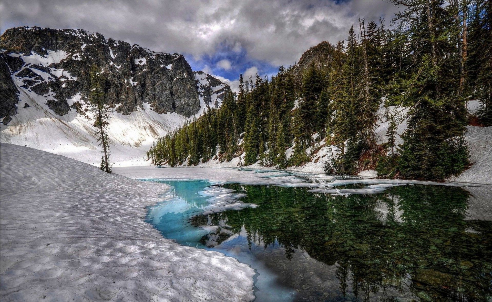 Bentley is driving on the road. in the snowy mountainsBentley is driving on the road. In the snowy mountains