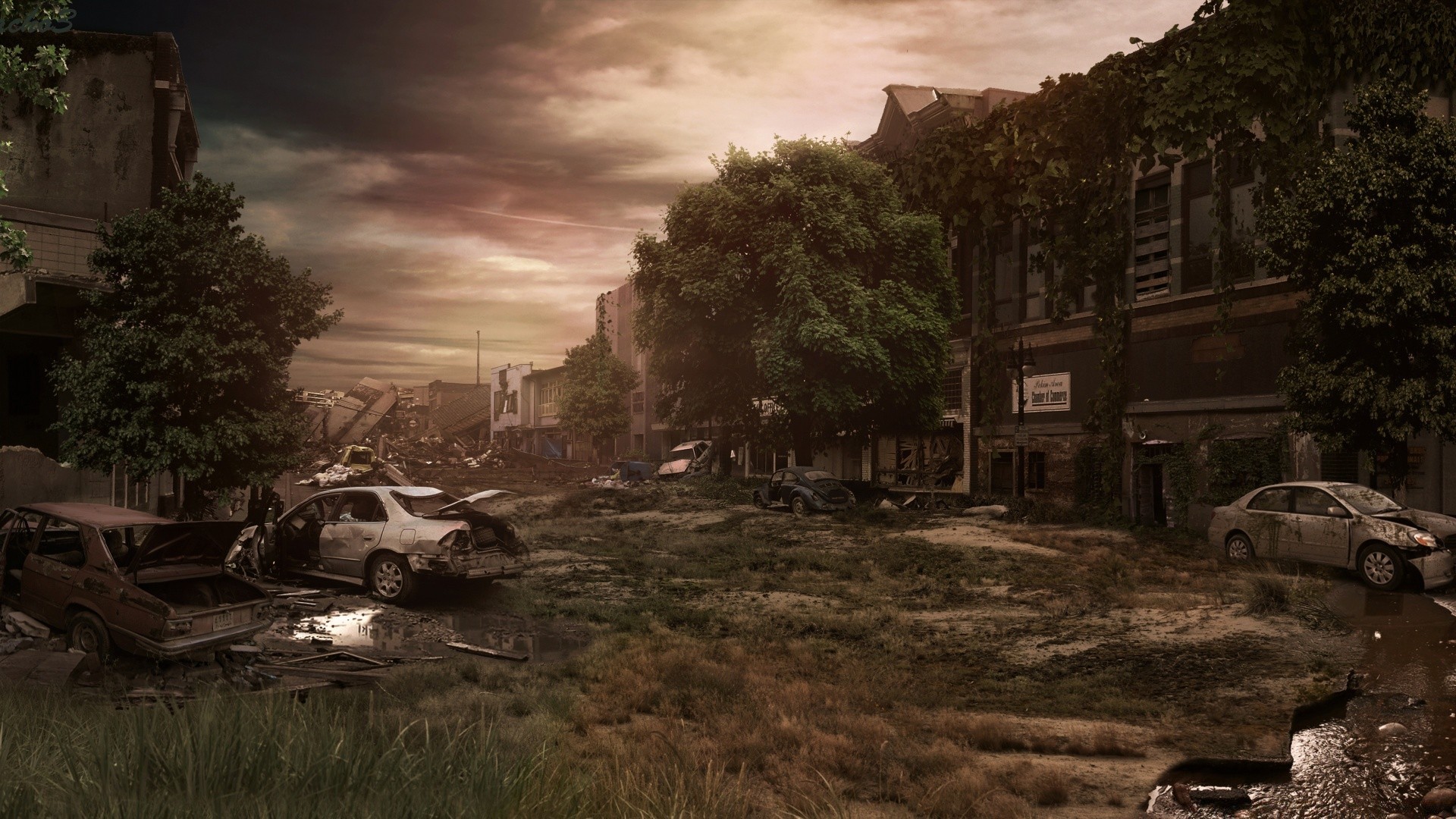 Abandoned city and cars