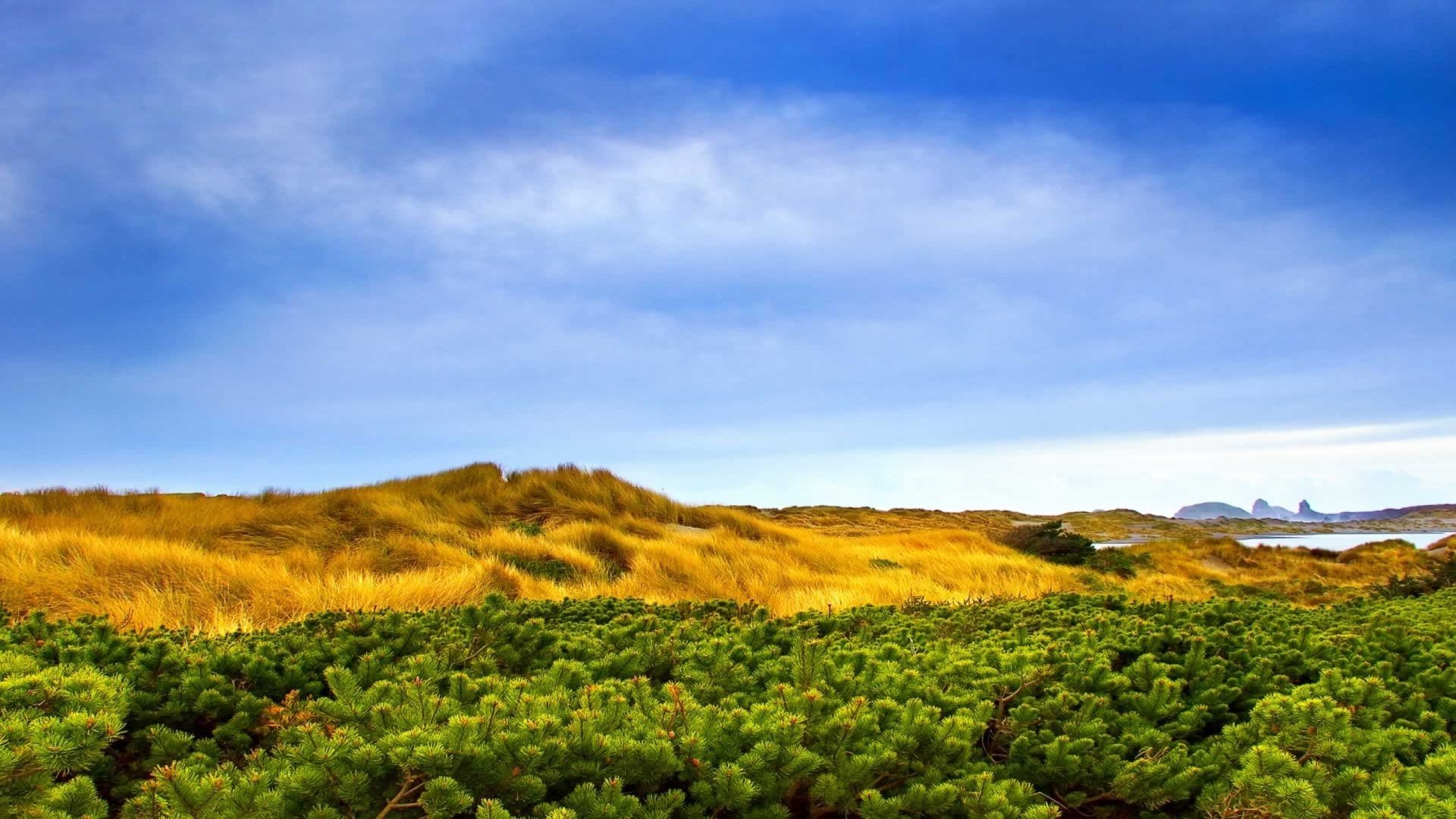 Warm and bright hill next to the forest