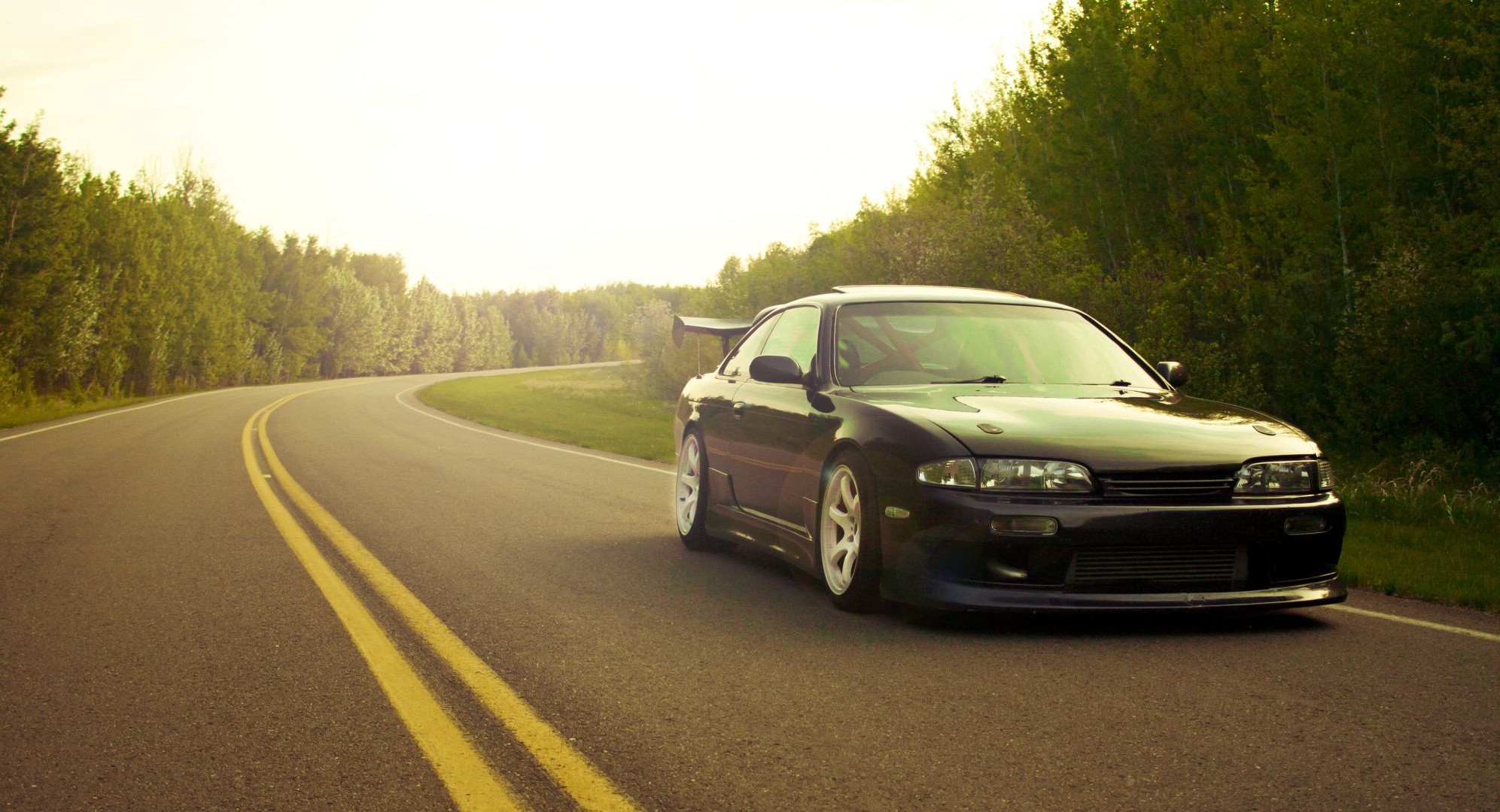 Black sports car on asphalt