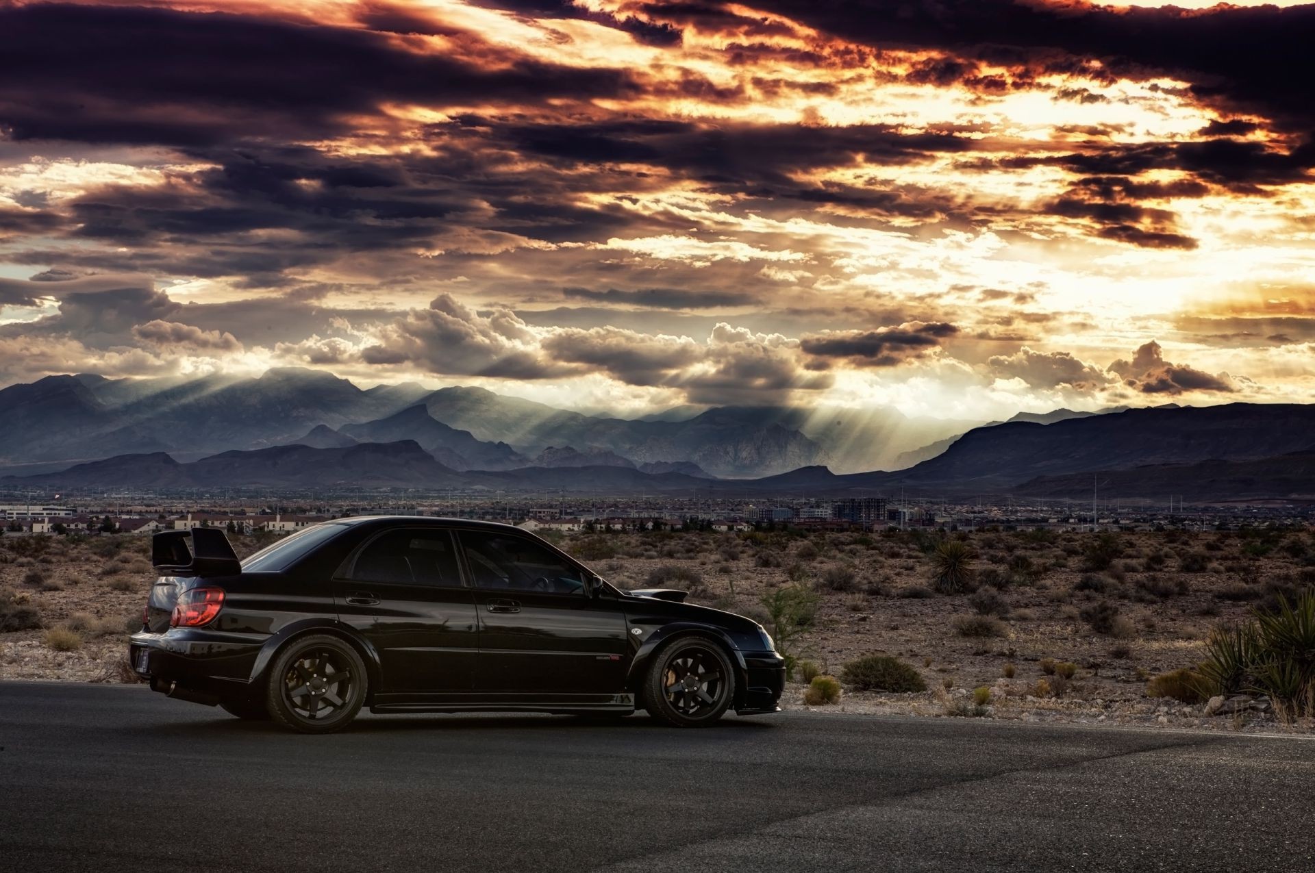 Car on the background of the desert and mountains