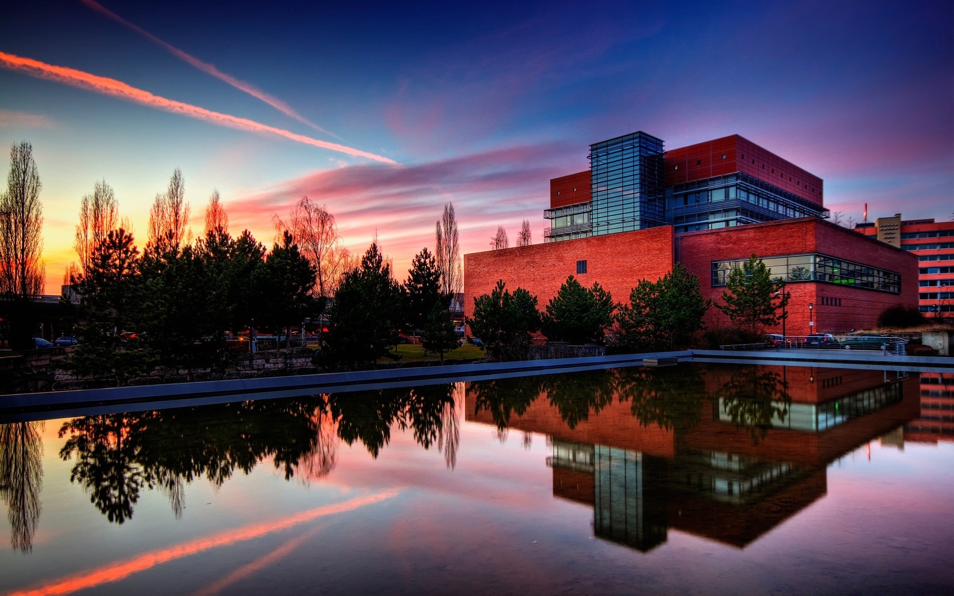 Photo with the reflection of the house in the water surface