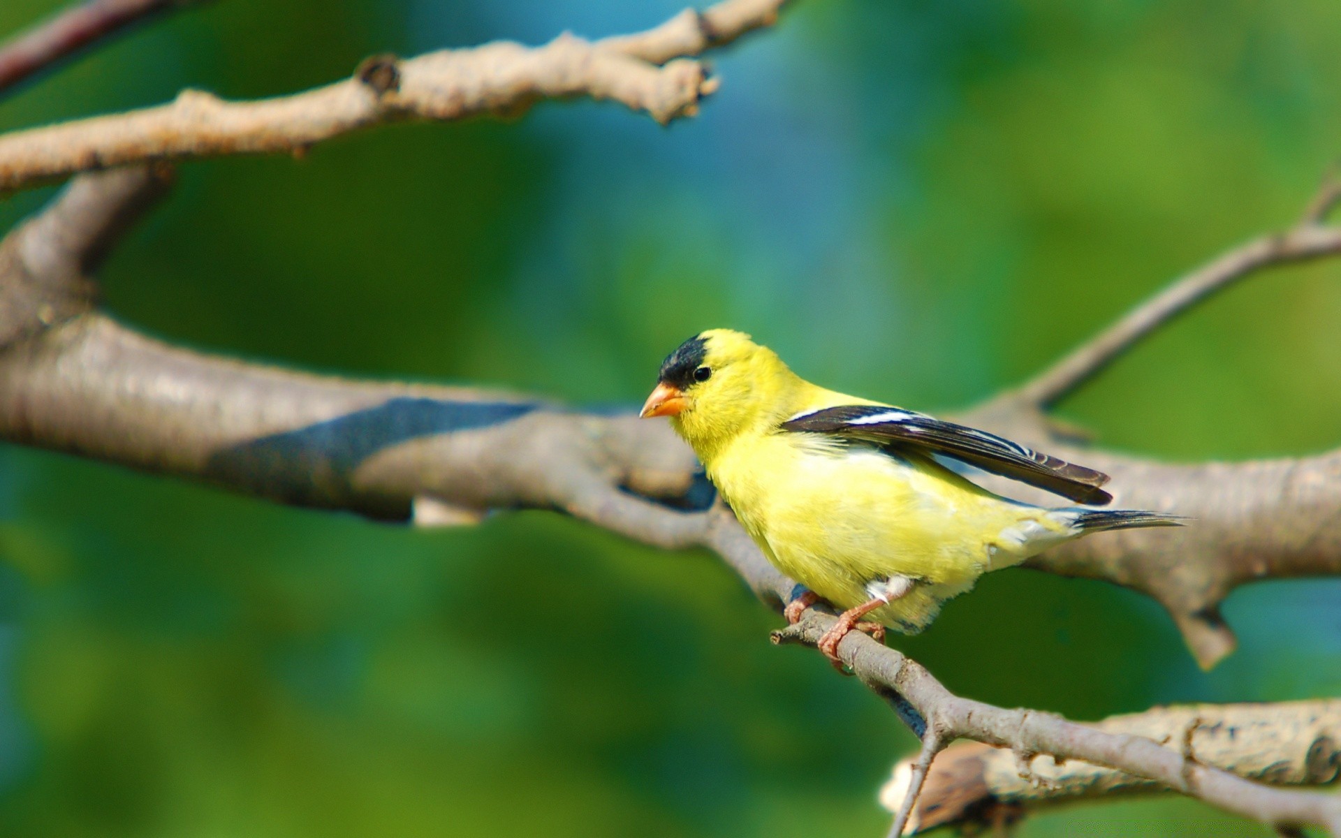 The yellow bird is sitting on a branch spring has come