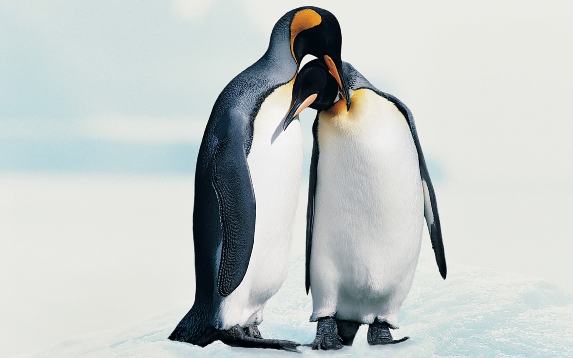 Two penguins on a frosty winter day