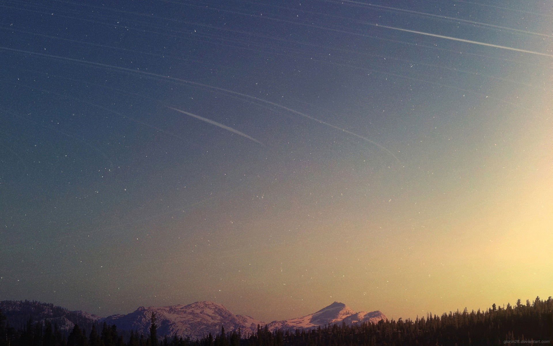The cycle of stars in the night sky over the forestThe cycle of stars in the night sky over the forest