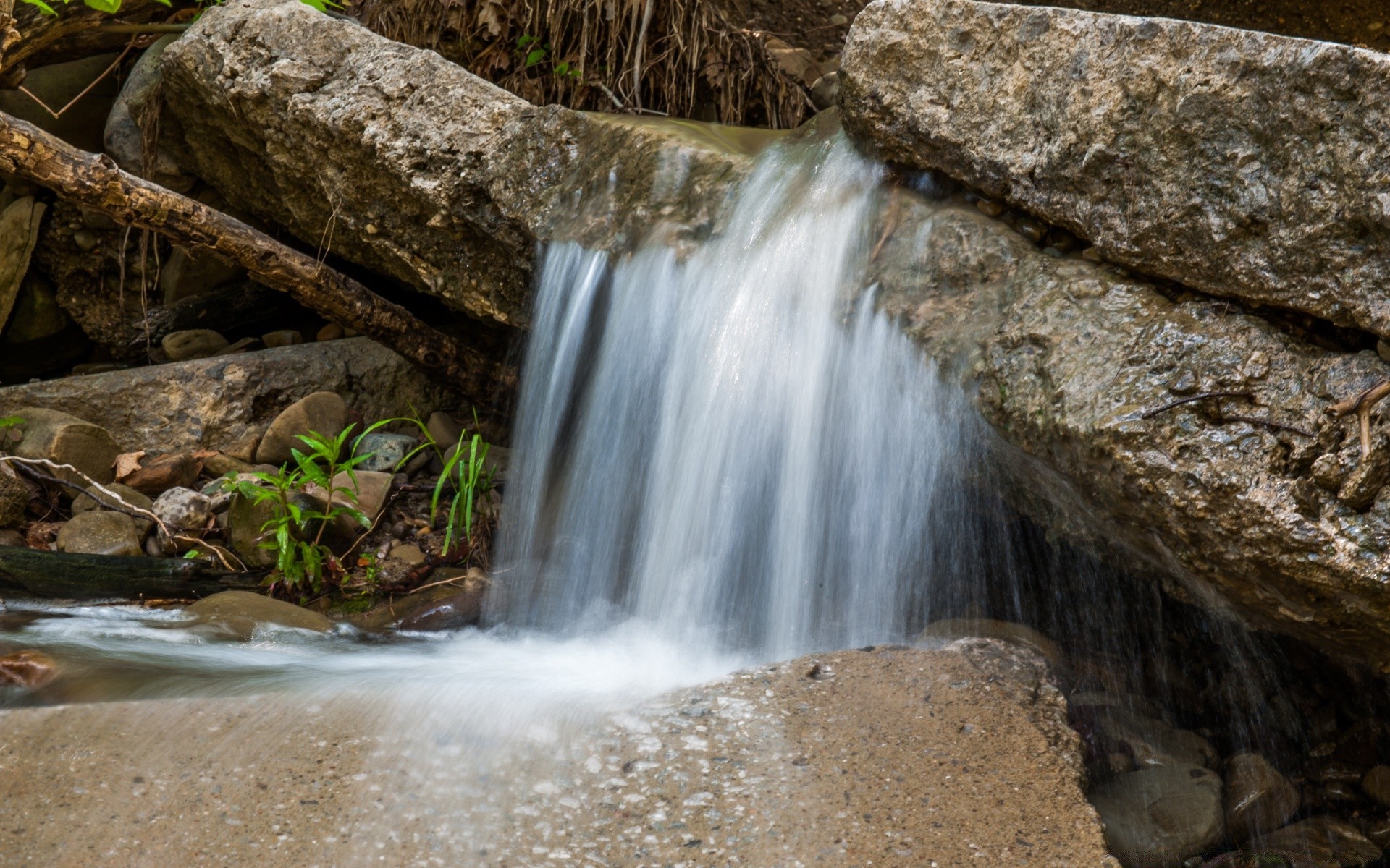High stones and from them a waterfall