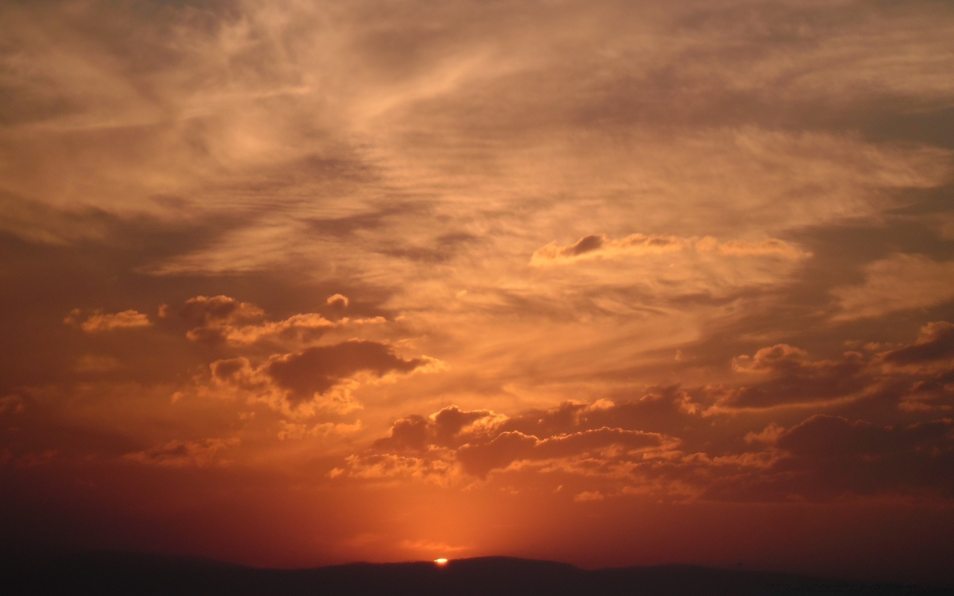 Evening sky with a silhouette of clouds against the background of the setting sun