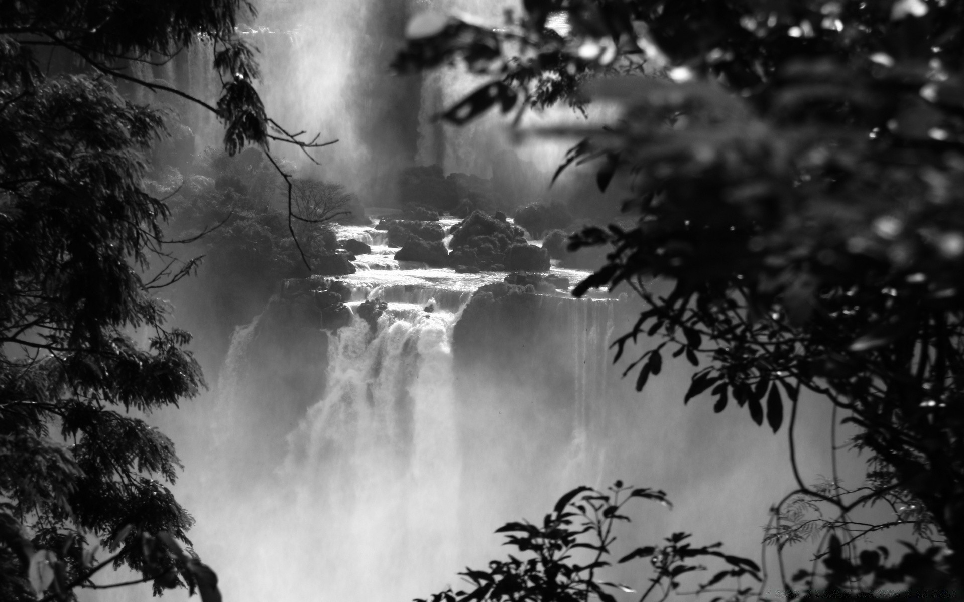 View of the mountain stream through the black branches