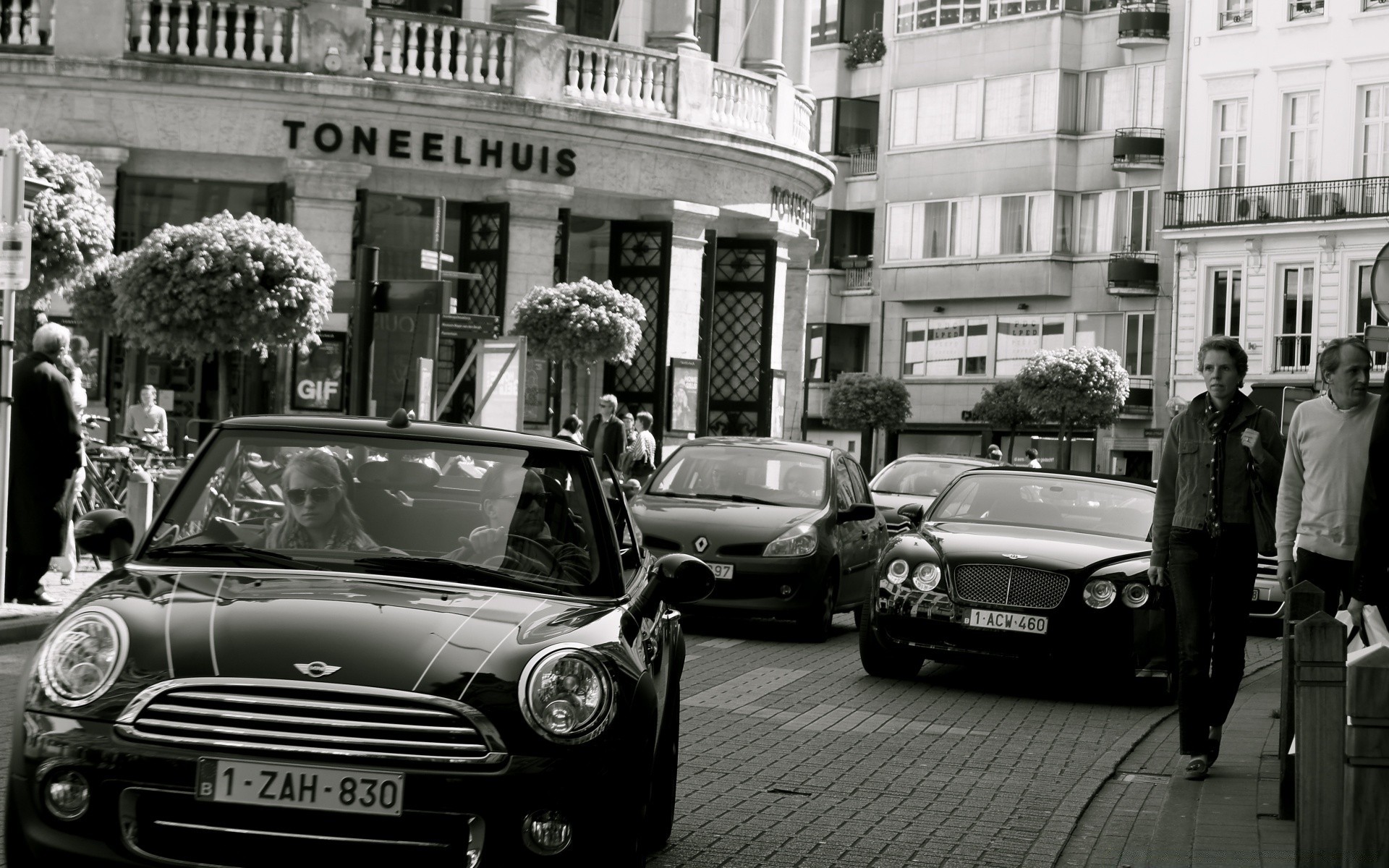 Black mini Cooper convertible on the street