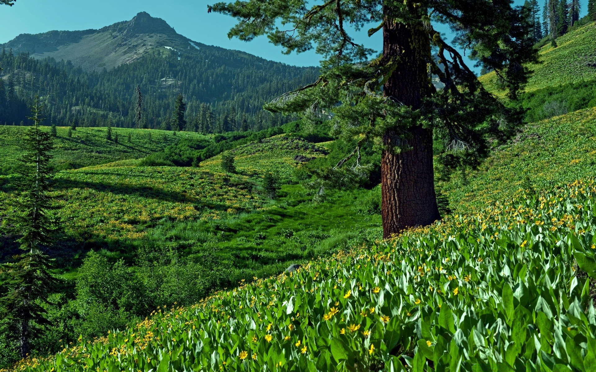 Photo landscape with the image of a transparent pond among stones against the background of a high coniferous forest and mountains
