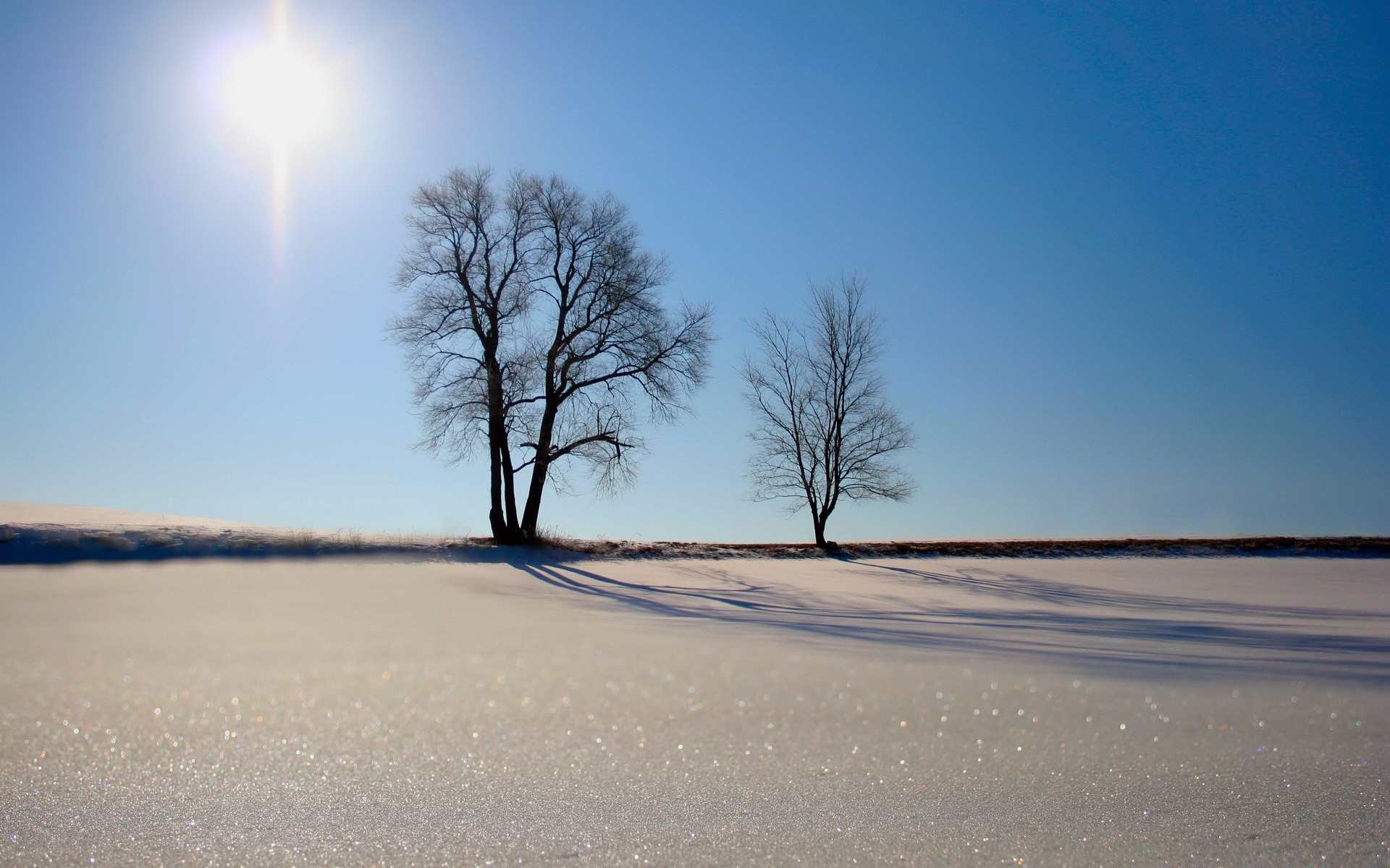 Trees against a blue sky in the rays of the dawn sunTrees against a blue sky in the rays of the dawn sun