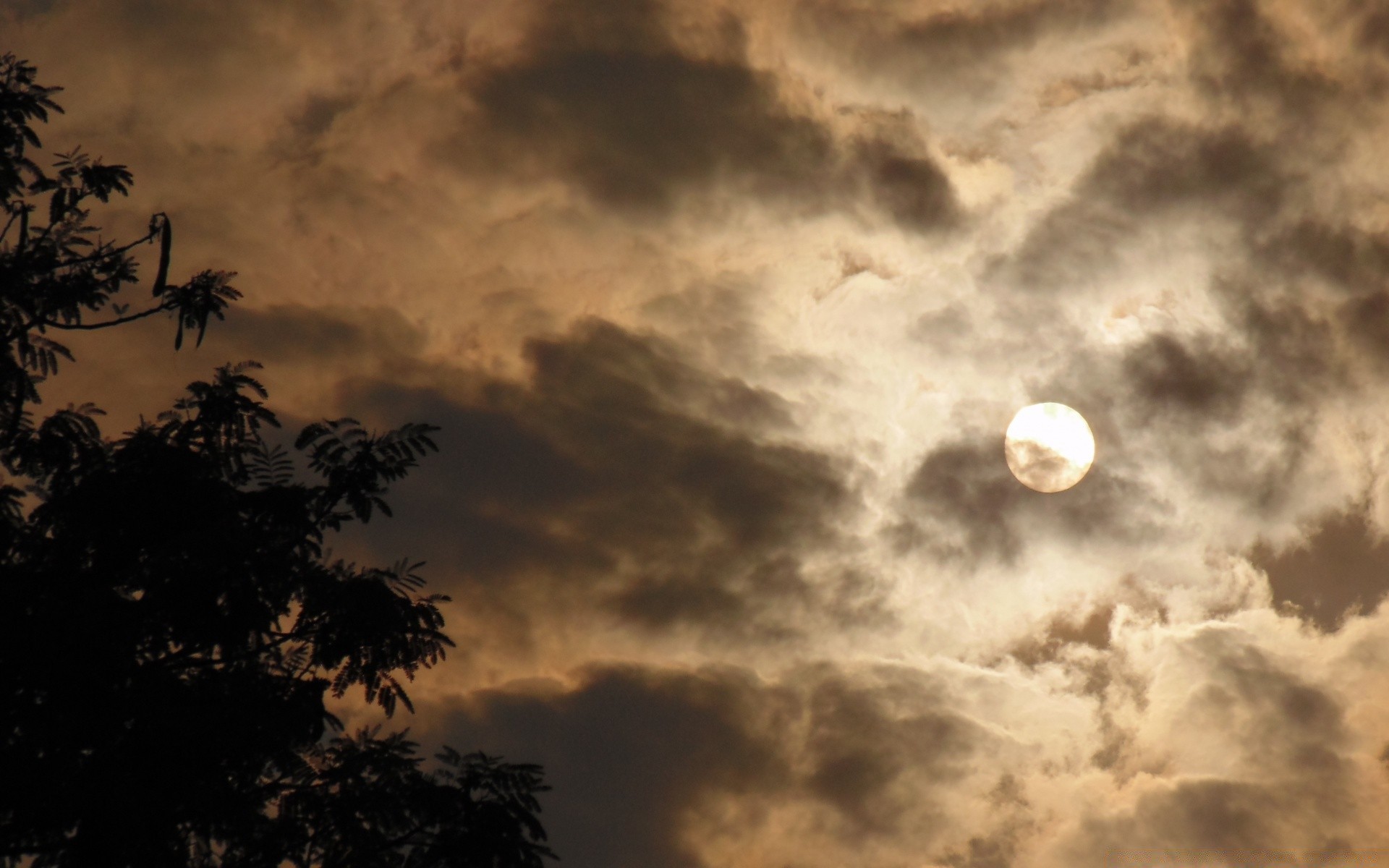 A small sun behind dark clouds