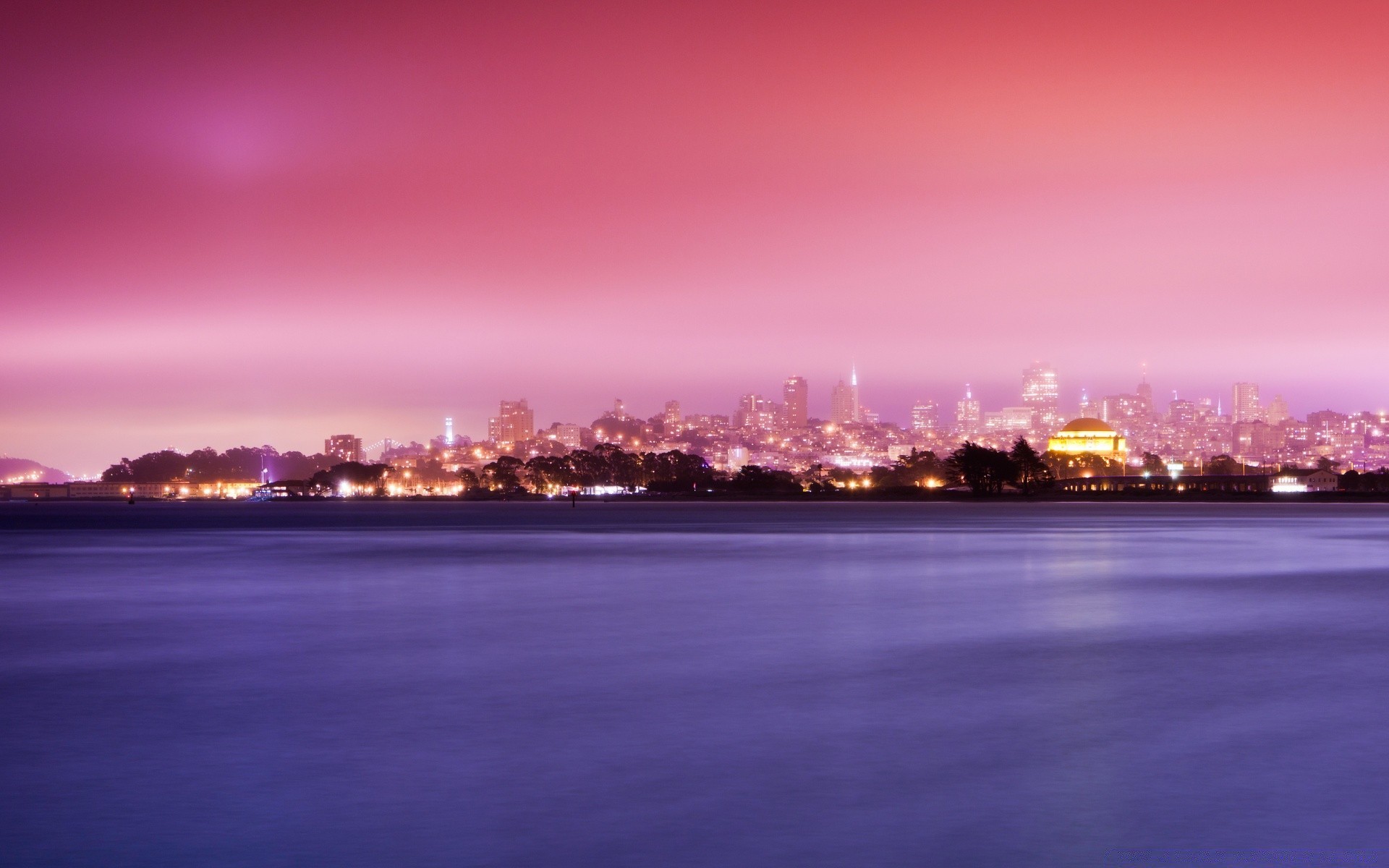 Lilac sunset, haze over the water