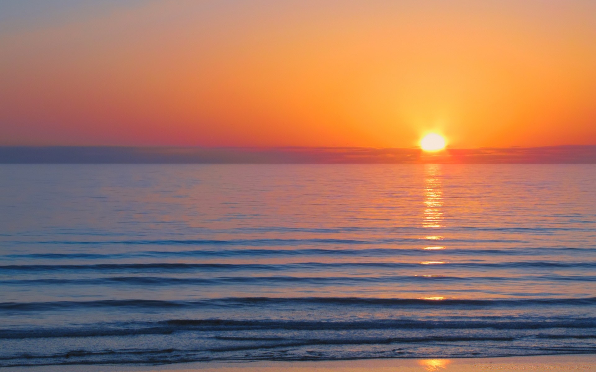 The dawn is reflected on the surface of the ocean