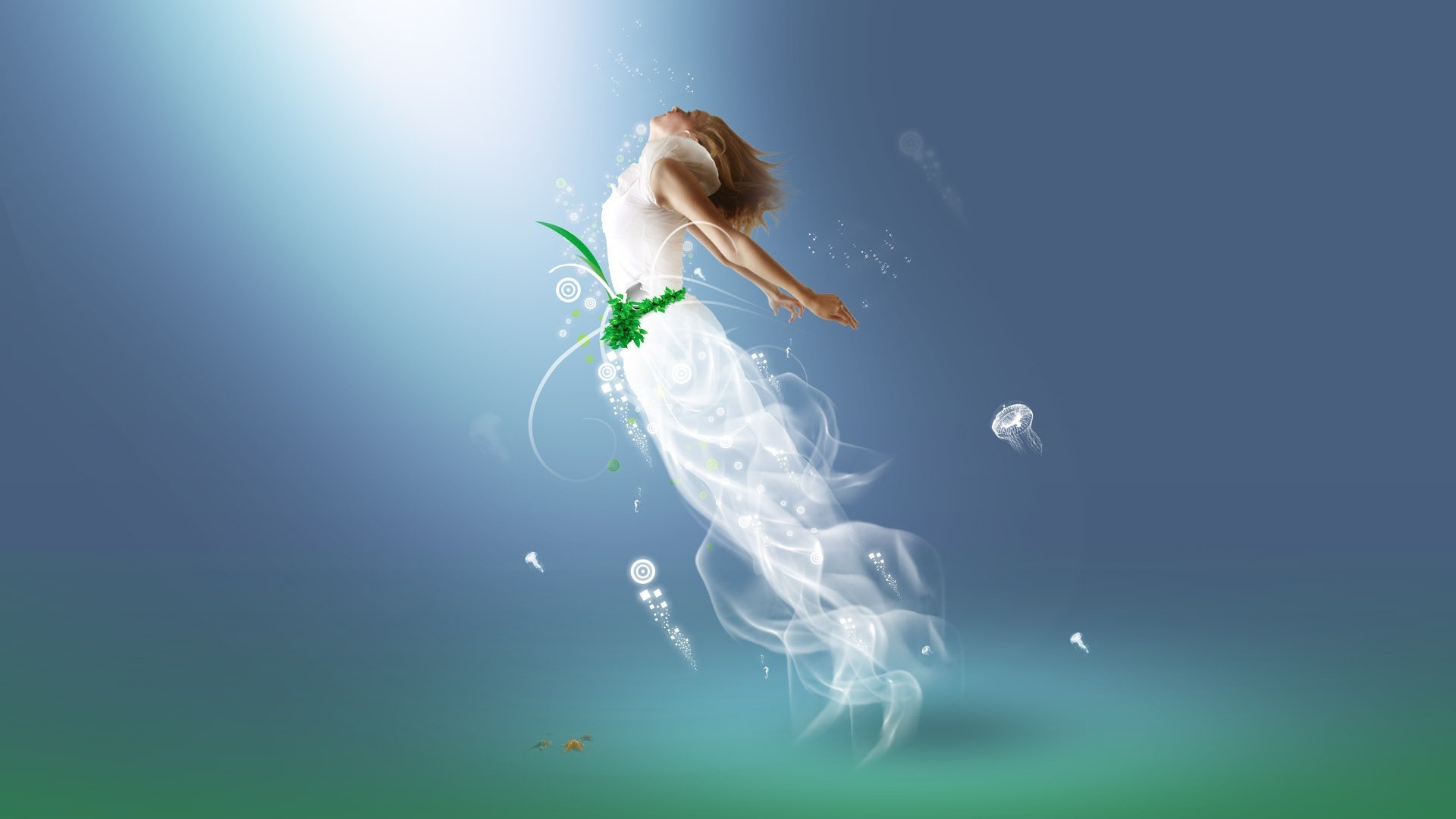 The jellyfish phosphorizes and swims in the depths of the ocean
