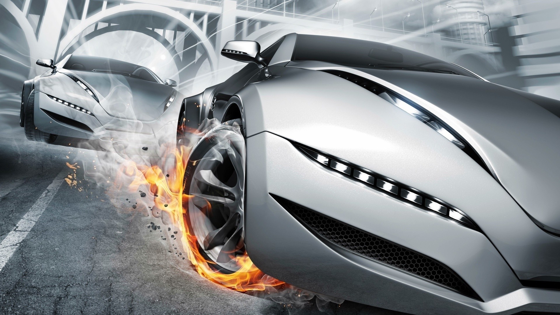 Sports cars in silver color