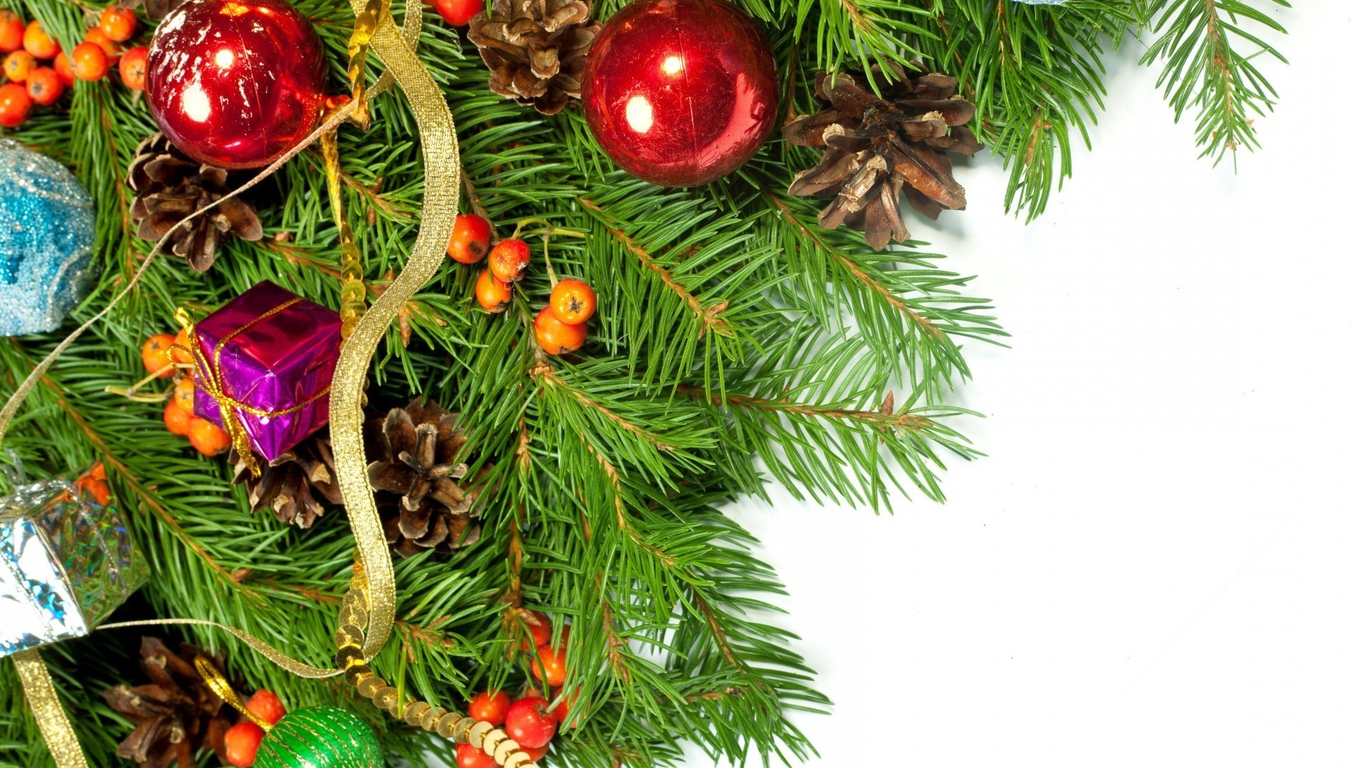 Festive set with fir and pine branches