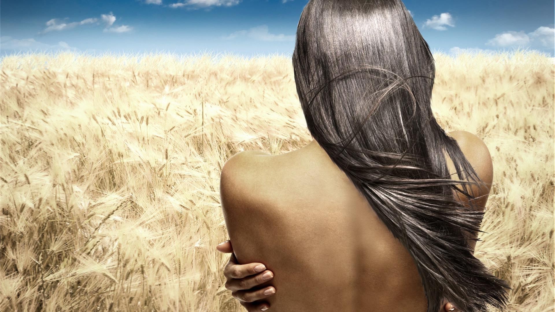 A girl in a field against the background of the sunA girl in a field against the background of the sun