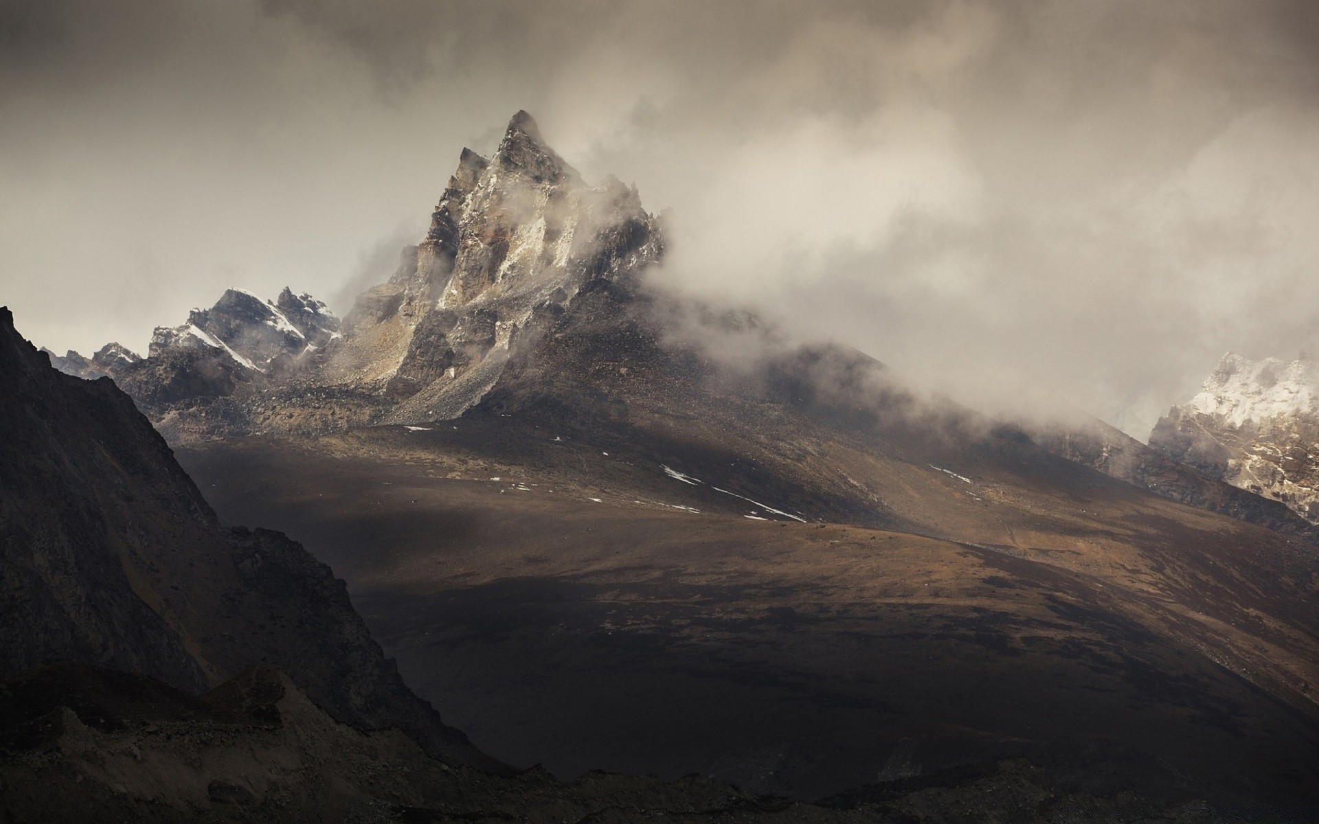 Mountains in a thick fog