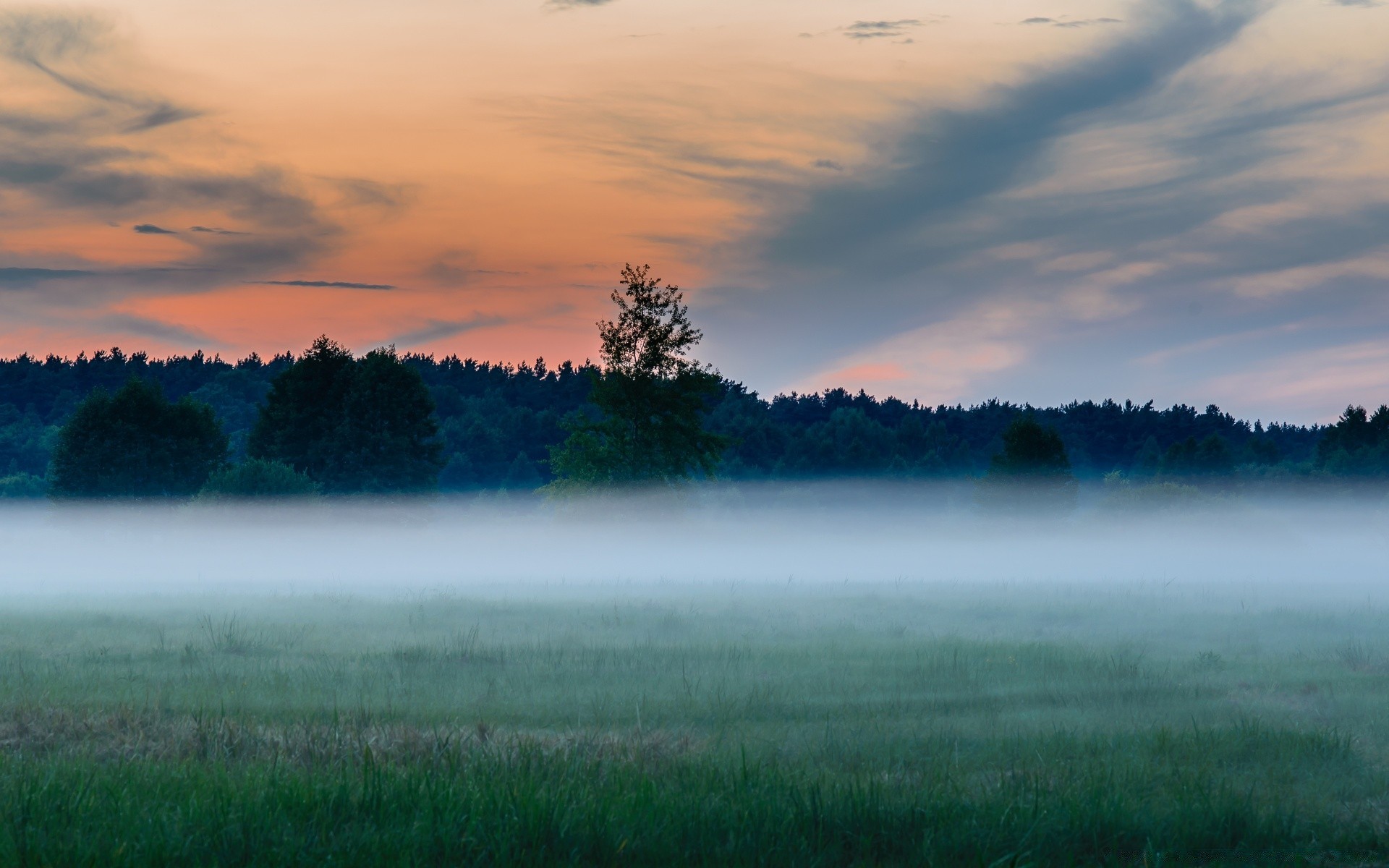 Winter evening. A thick fog enveloped the forest