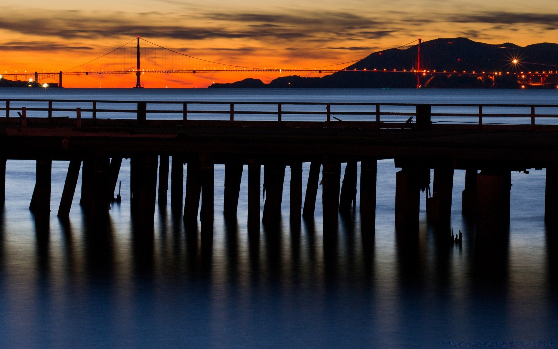 Frosty sunset reflected in the water of the river surrounded by rain-covered grass and trees