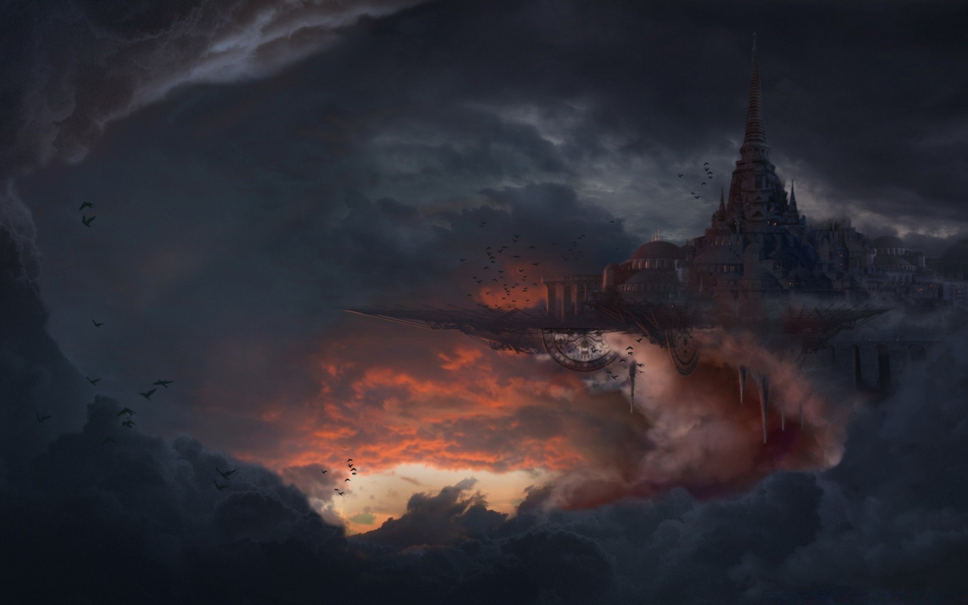 A girl is sitting on the roof with a fantasy animal against the sunset backgroundA girl is sitting on the roof with a fantasy animal against the sunset background