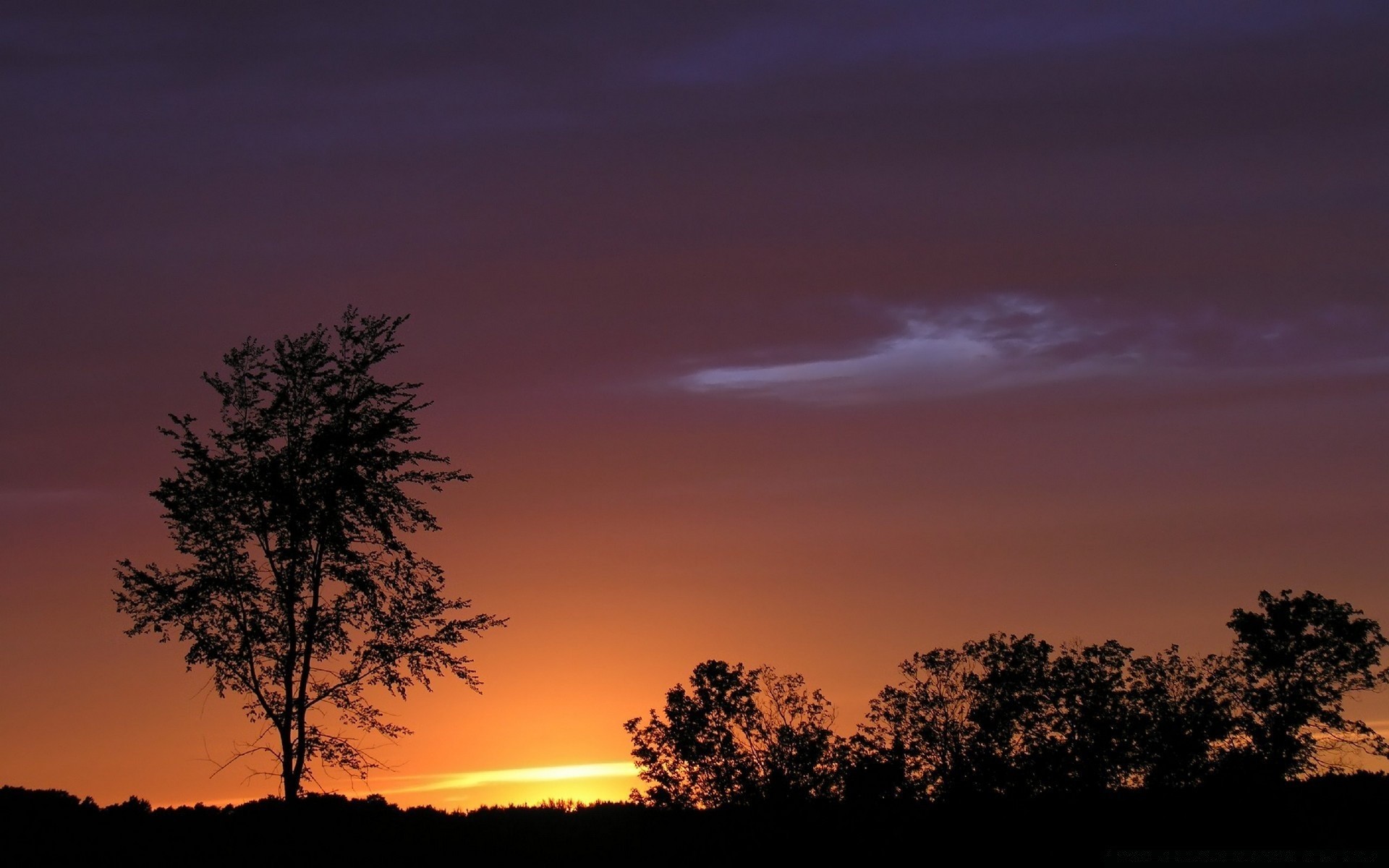 Silhouettes of trees against the sunset