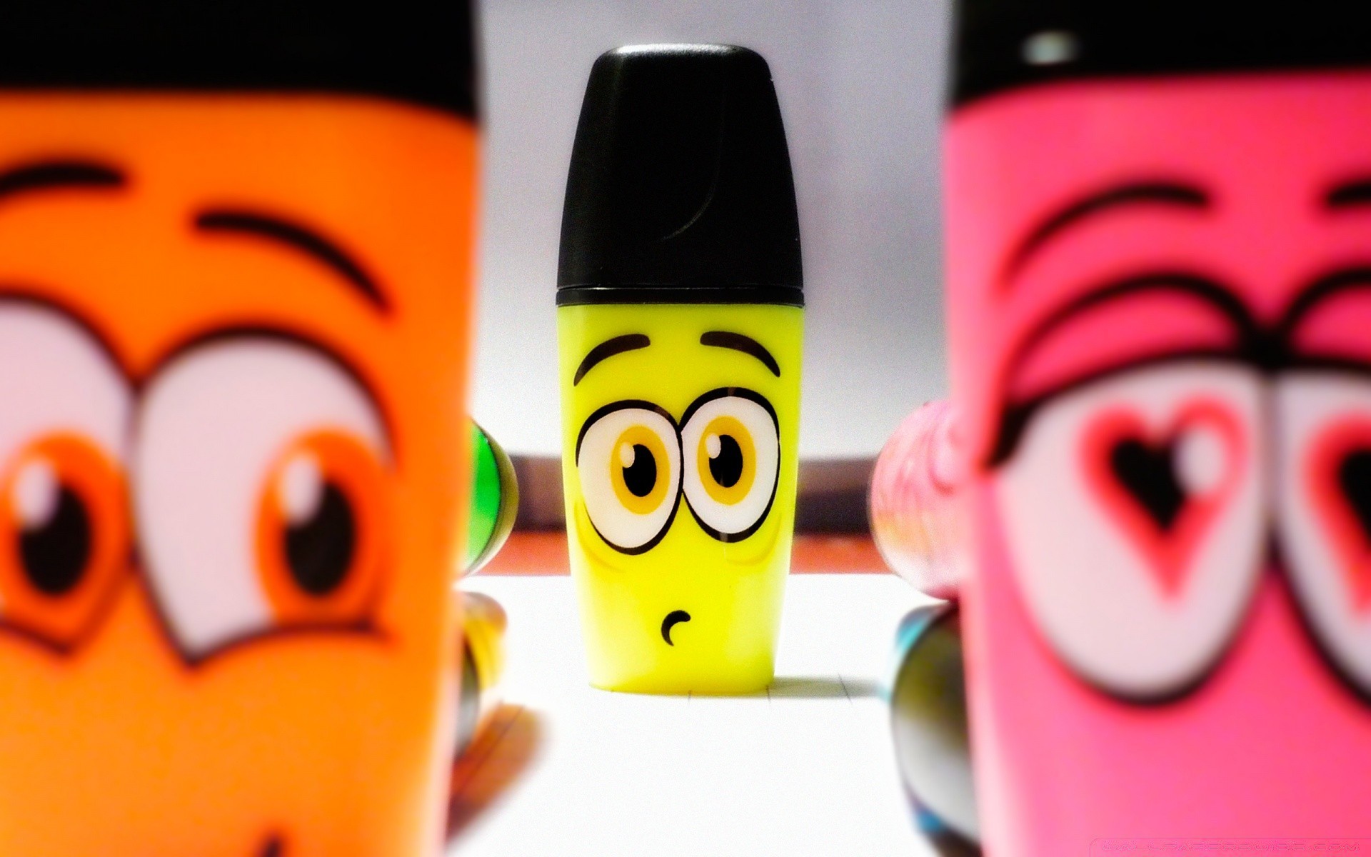 Three bright markers with eyes