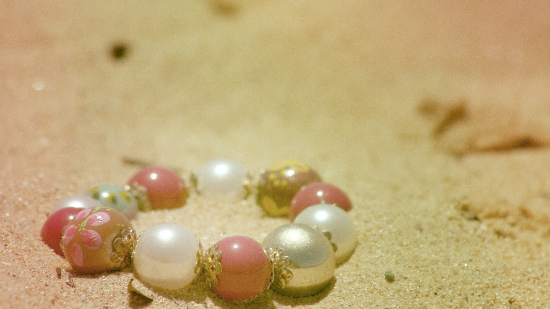 Bracelet made of white and pink beads on the sand