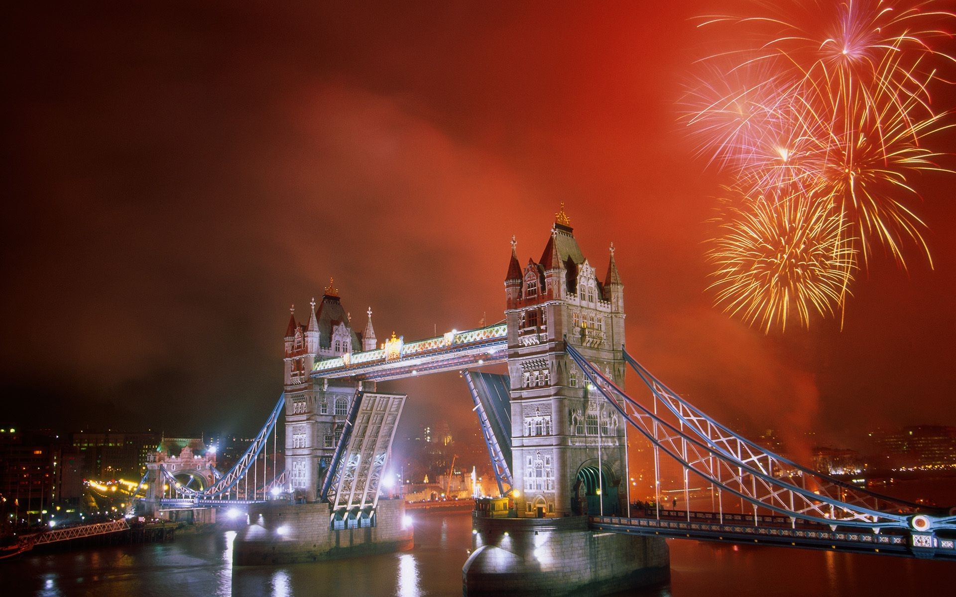 Drawbridge and fireworks