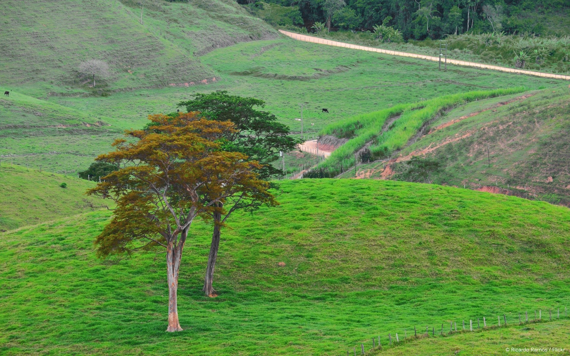 Two huge trees among the fields