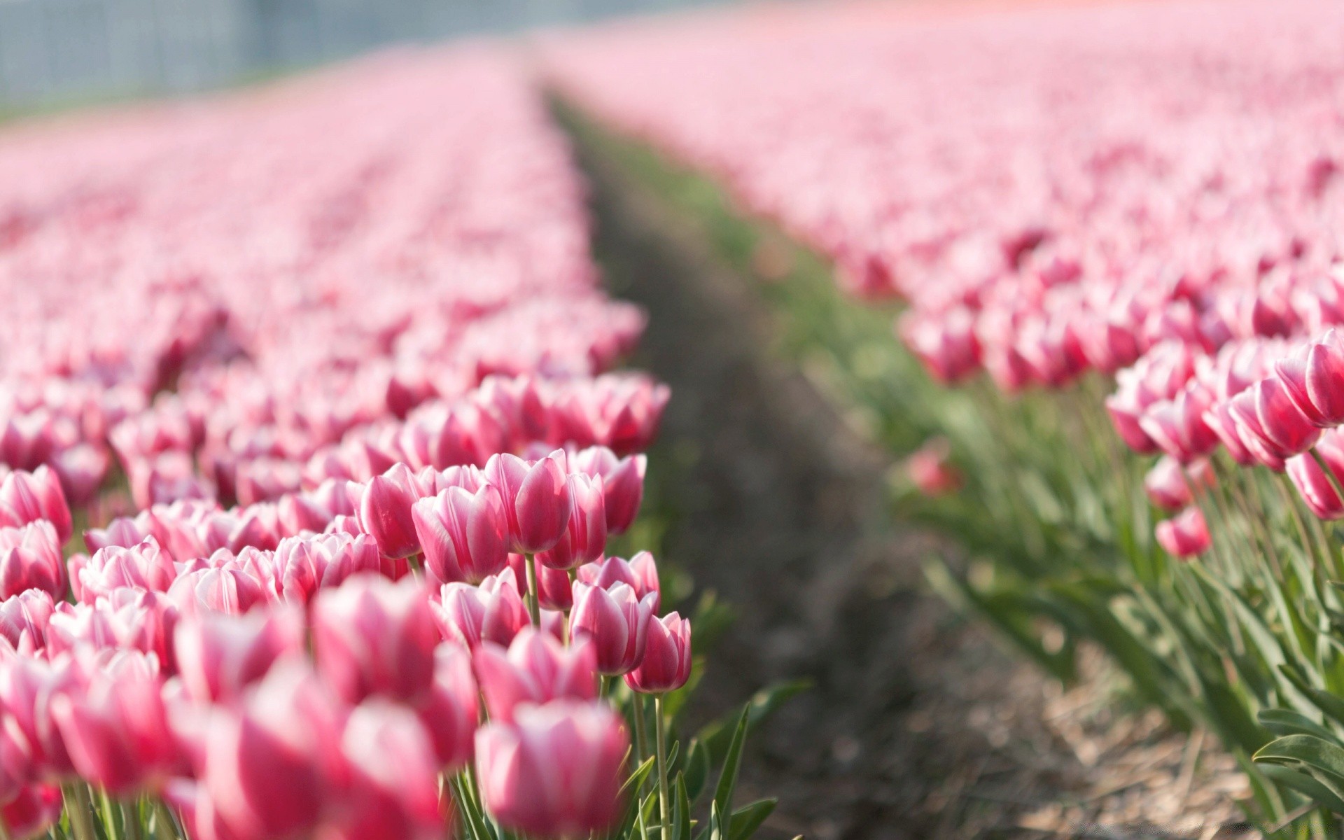A field of blooming tulips. pink flowers