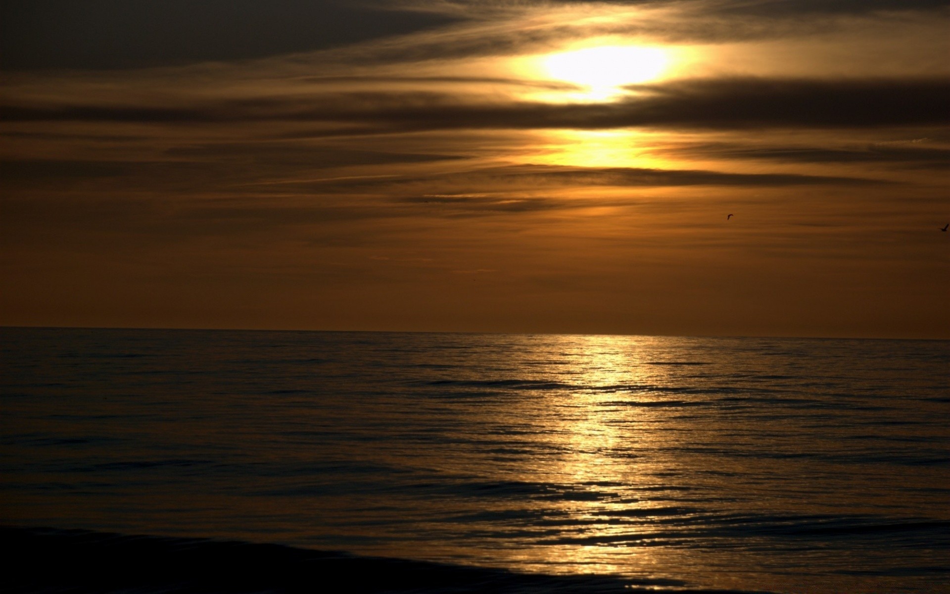 Sunset over the calm ocean water